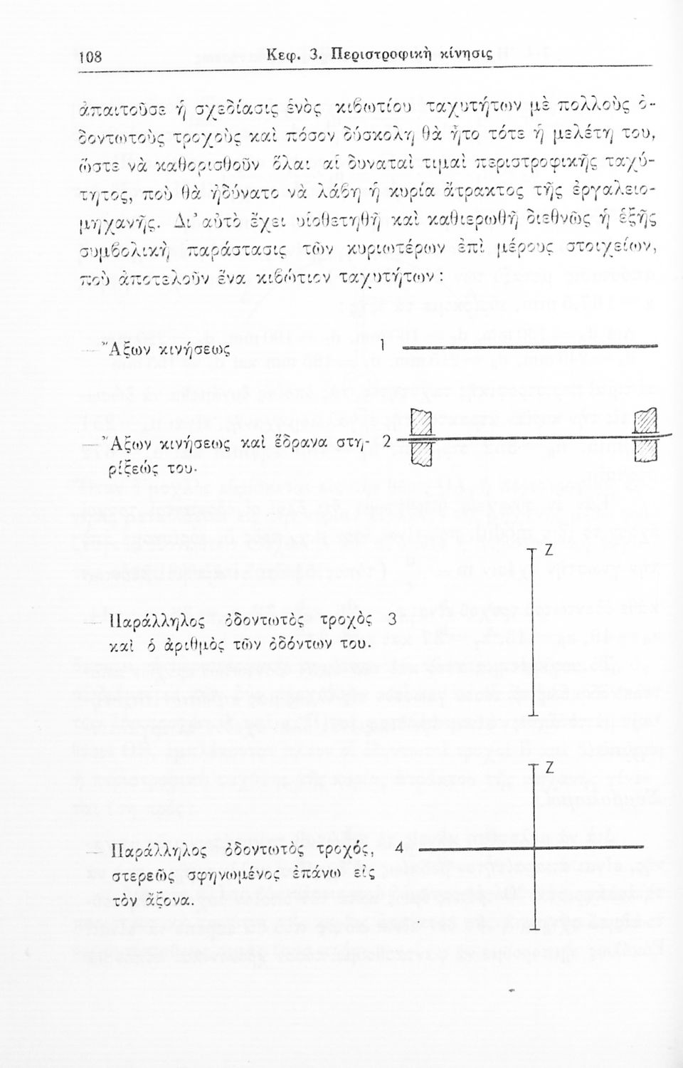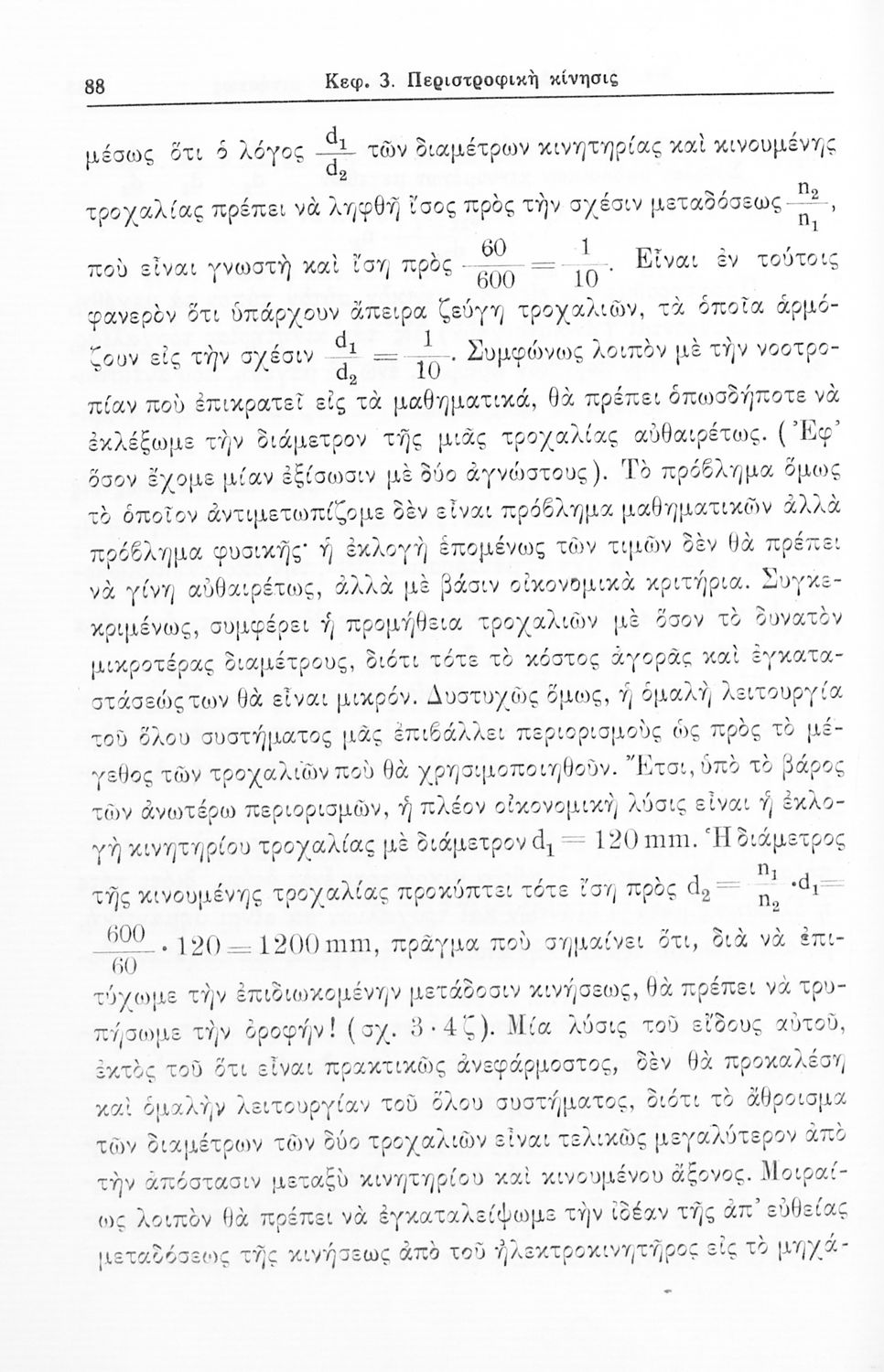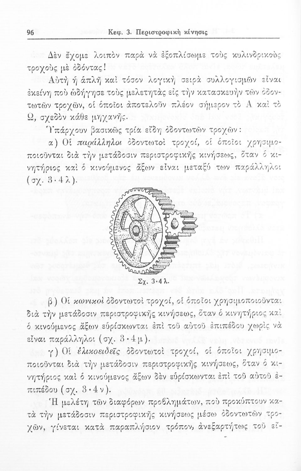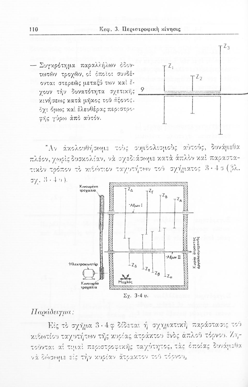 Σχολικό εγχειρίδιο Μηχανικής για τους μαθητές Γυμνασίου. Παρουσιάζει διάφορα είδη κινήσεων και δείχνει ζητήματα υπολογισμού όπως για παράδειγμα, ομοιόμορφες κινήσεις, επιταχυνόμενη-επιβραδυνόμενη κίνηση καθώς και σύνθετες κινήσεις οι οποίες συνδυάζουν τα παραπάνω χαρακτηριστικά. Επιπλέον, εξετάζει και κινήσεις διαφορετικών μηχανών όπως είναι οι κινήσεις τροχαλίας και ιμάντων, αλλά και κινήσεις ανθρώπων και αυτοκινήτων. Μελετά ζητήματα επιτάχυνσης και μεταβολής της κίνησης.