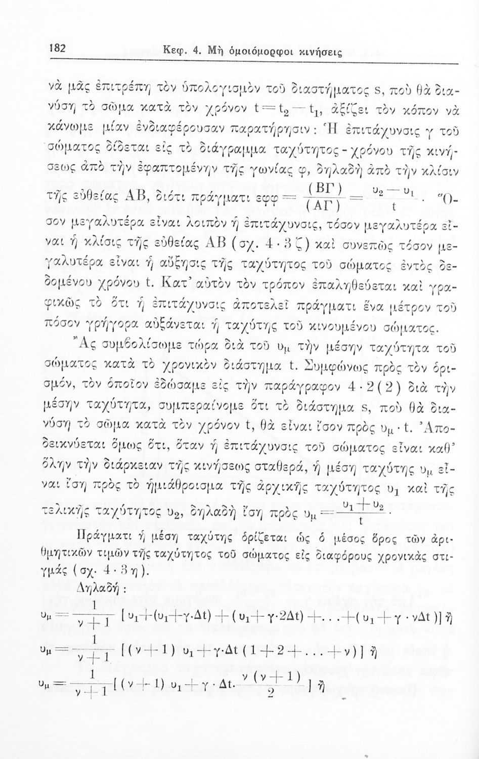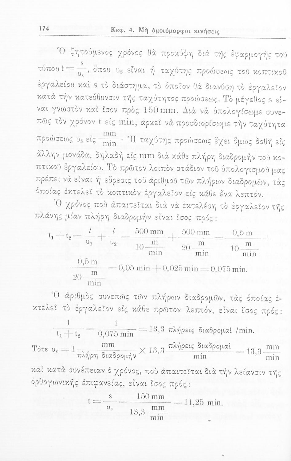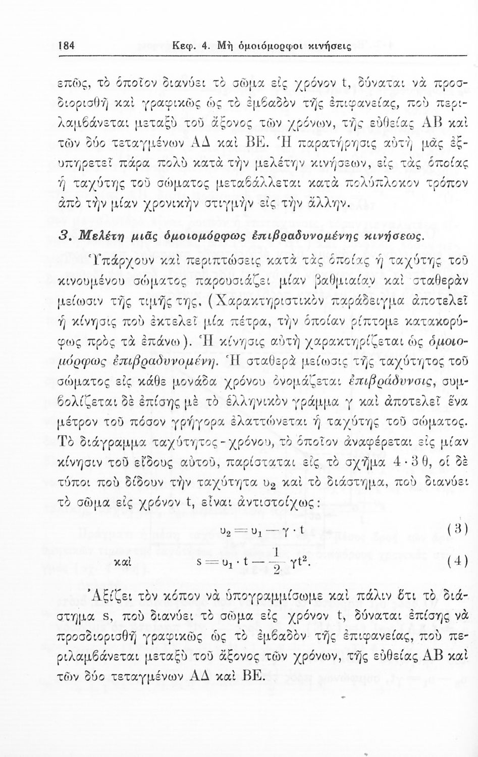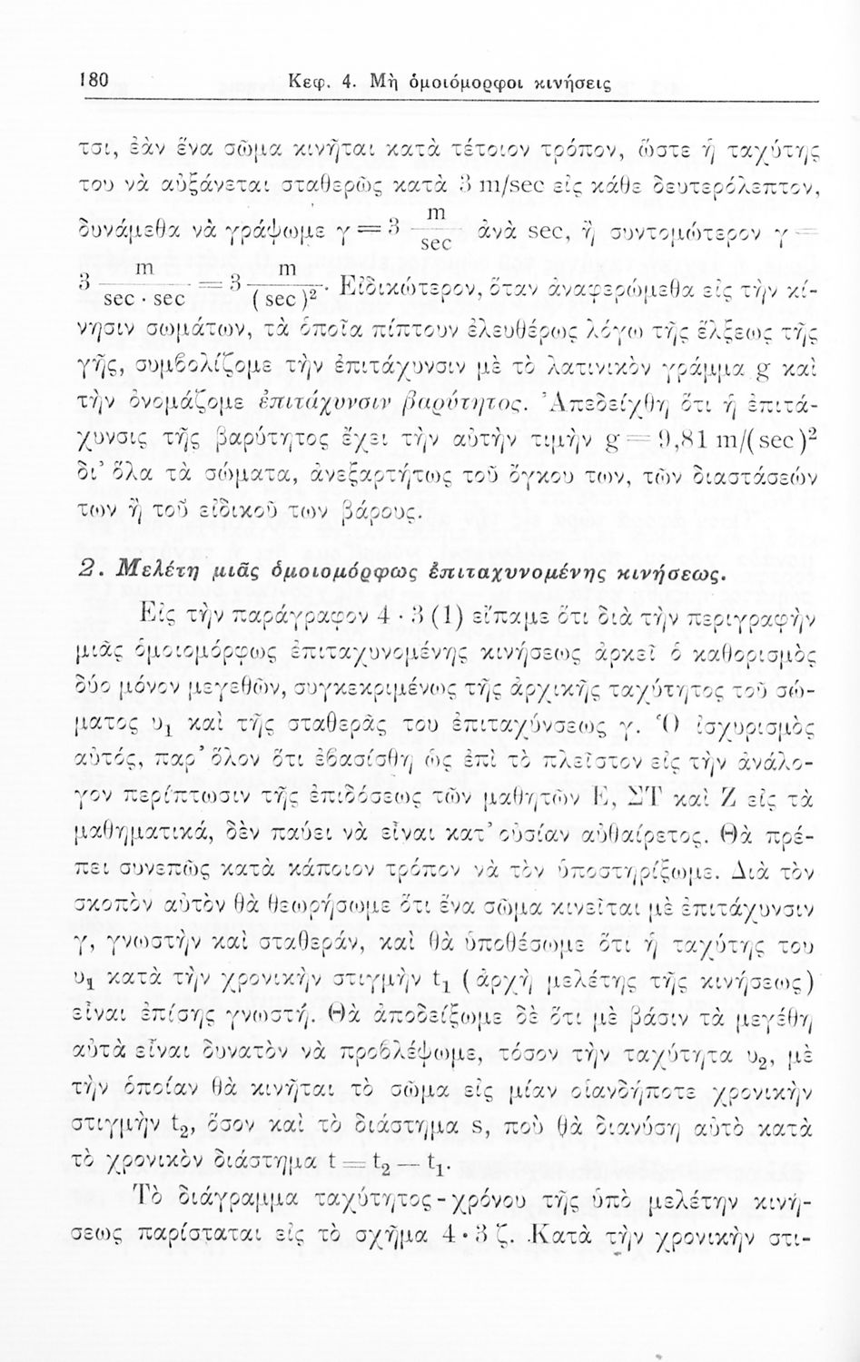 Σχολικό εγχειρίδιο Μηχανικής για τους μαθητές Γυμνασίου. Παρουσιάζει διάφορα είδη κινήσεων και δείχνει ζητήματα υπολογισμού όπως για παράδειγμα, ομοιόμορφες κινήσεις, επιταχυνόμενη-επιβραδυνόμενη κίνηση καθώς και σύνθετες κινήσεις οι οποίες συνδυάζουν τα παραπάνω χαρακτηριστικά. Επιπλέον, εξετάζει και κινήσεις διαφορετικών μηχανών όπως είναι οι κινήσεις τροχαλίας και ιμάντων, αλλά και κινήσεις ανθρώπων και αυτοκινήτων. Μελετά ζητήματα επιτάχυνσης και μεταβολής της κίνησης.