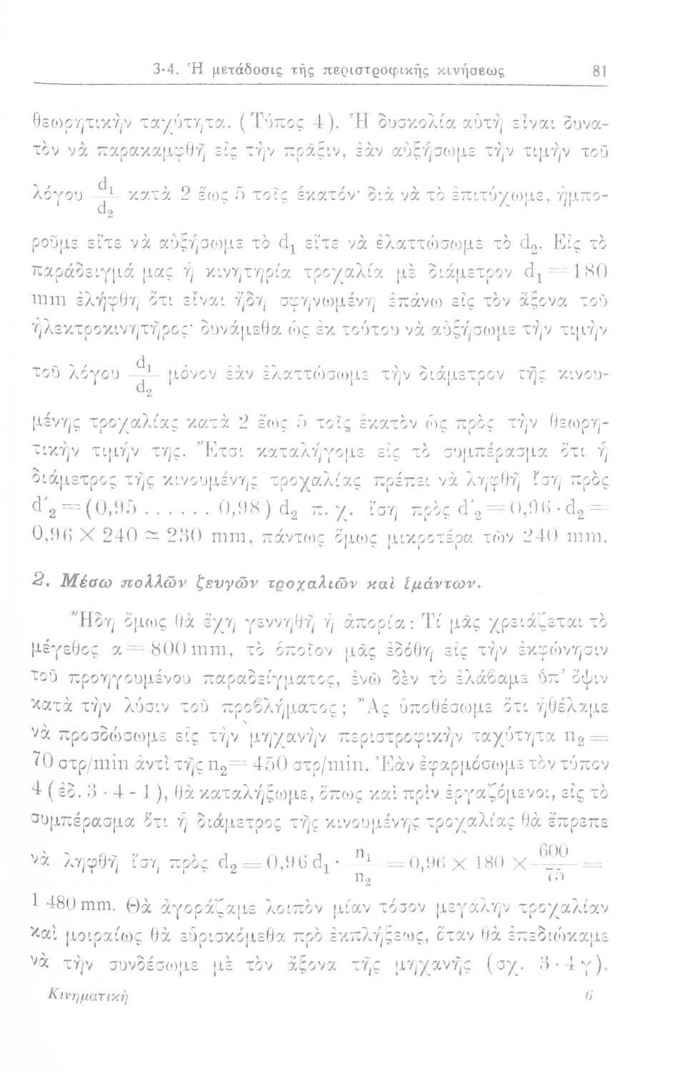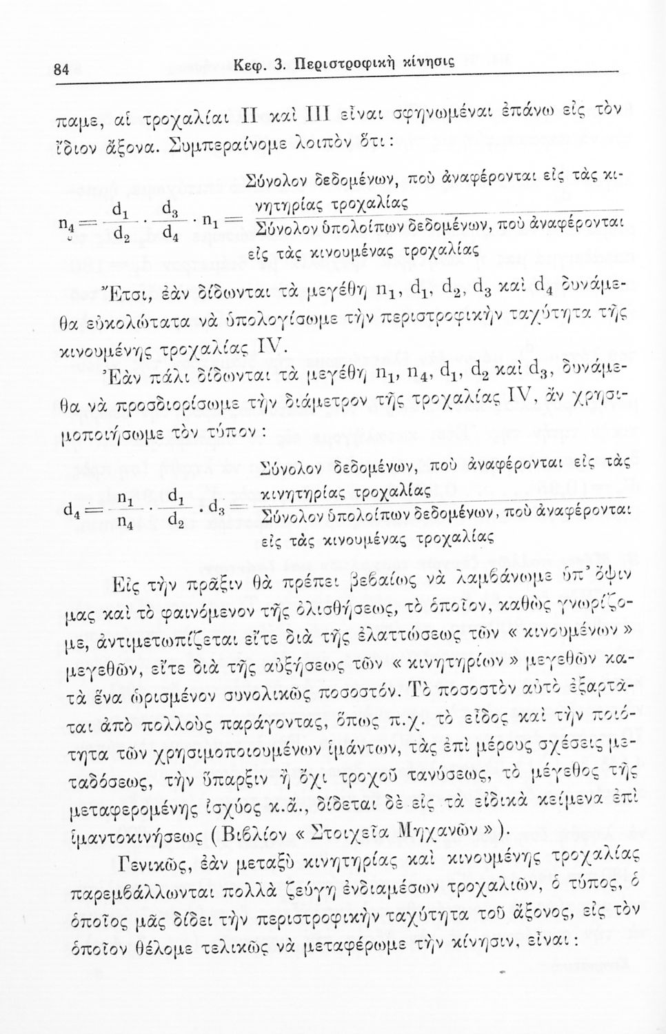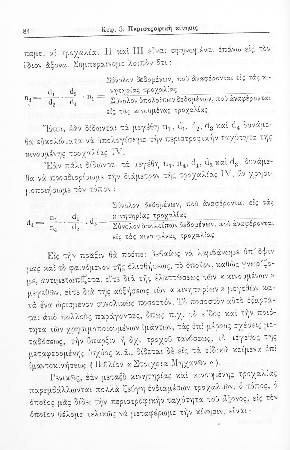 Σχολικό εγχειρίδιο Μηχανικής για τους μαθητές Γυμνασίου. Παρουσιάζει διάφορα είδη κινήσεων και δείχνει ζητήματα υπολογισμού όπως για παράδειγμα, ομοιόμορφες κινήσεις, επιταχυνόμενη-επιβραδυνόμενη κίνηση καθώς και σύνθετες κινήσεις οι οποίες συνδυάζουν τα παραπάνω χαρακτηριστικά. Επιπλέον, εξετάζει και κινήσεις διαφορετικών μηχανών όπως είναι οι κινήσεις τροχαλίας και ιμάντων, αλλά και κινήσεις ανθρώπων και αυτοκινήτων. Μελετά ζητήματα επιτάχυνσης και μεταβολής της κίνησης.