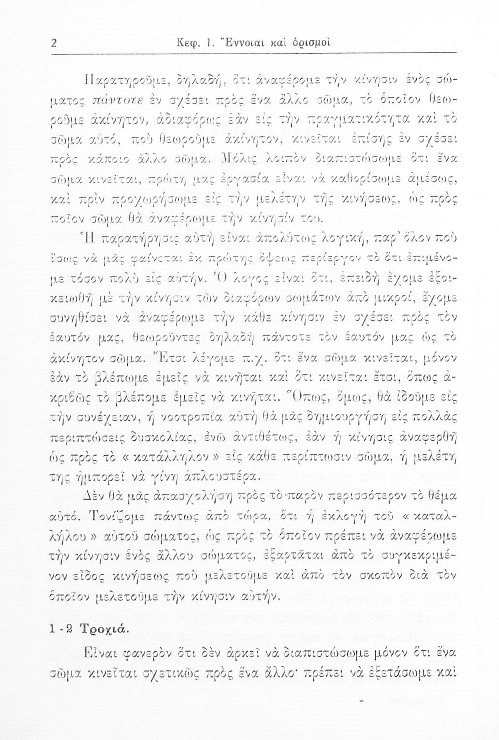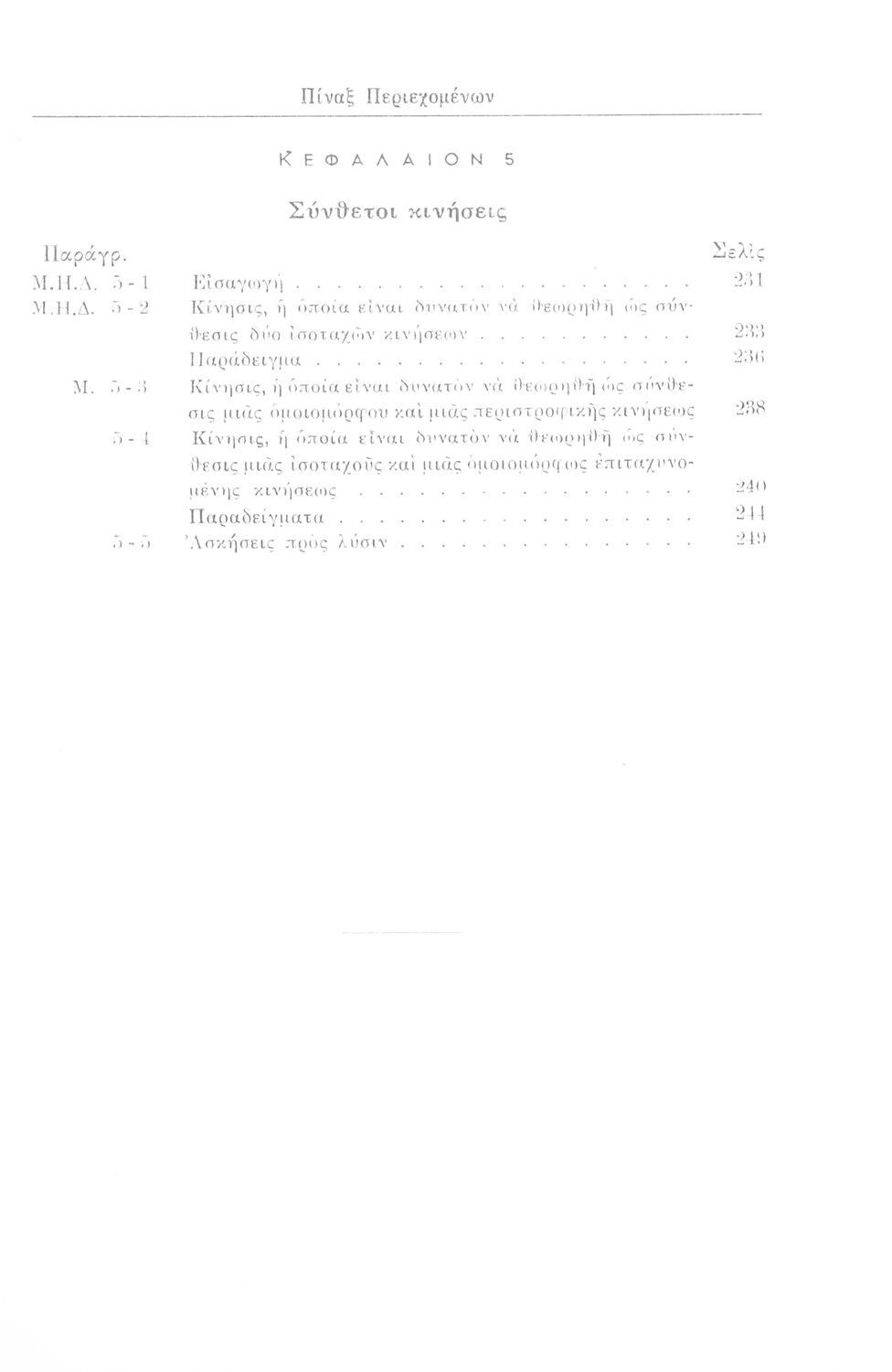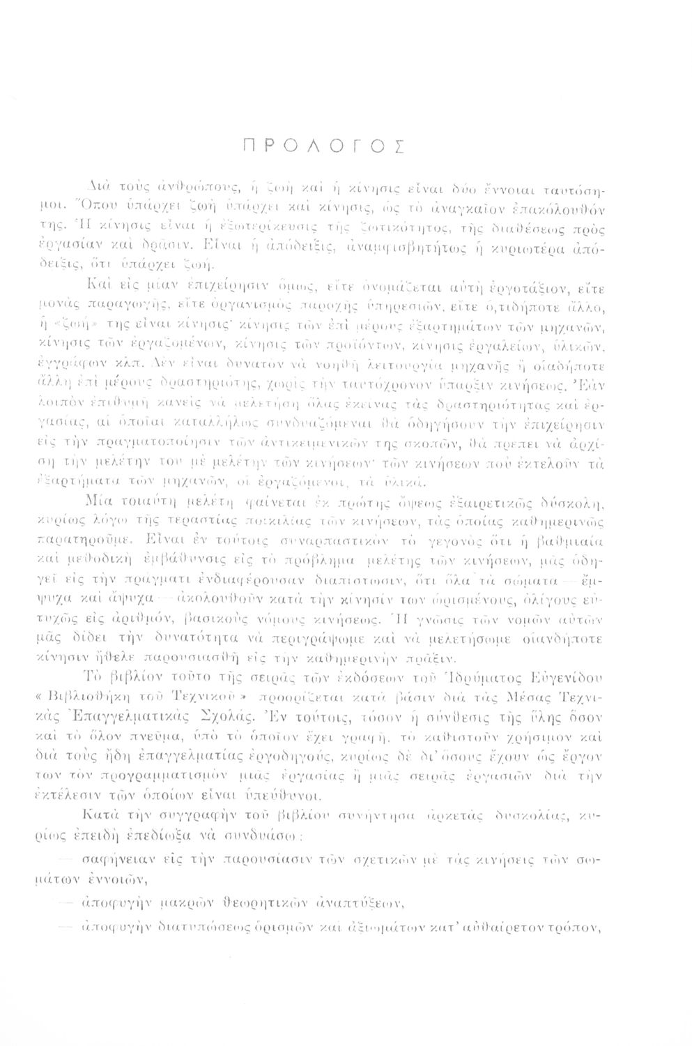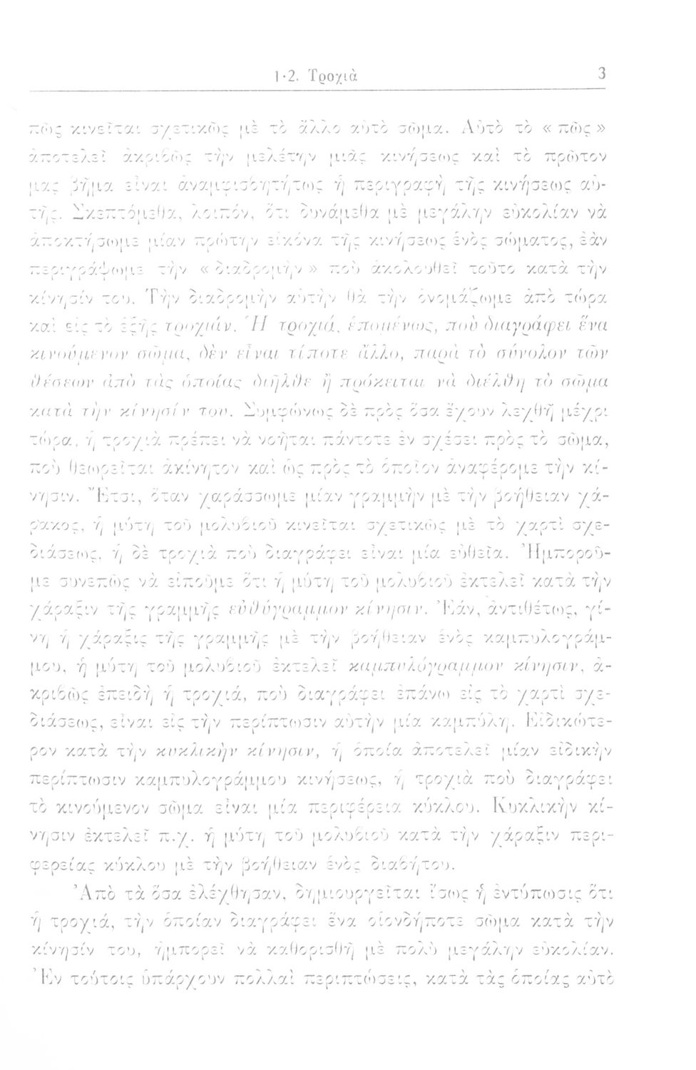 Σχολικό εγχειρίδιο Μηχανικής για τους μαθητές Γυμνασίου. Παρουσιάζει διάφορα είδη κινήσεων και δείχνει ζητήματα υπολογισμού όπως για παράδειγμα, ομοιόμορφες κινήσεις, επιταχυνόμενη-επιβραδυνόμενη κίνηση καθώς και σύνθετες κινήσεις οι οποίες συνδυάζουν τα παραπάνω χαρακτηριστικά. Επιπλέον, εξετάζει και κινήσεις διαφορετικών μηχανών όπως είναι οι κινήσεις τροχαλίας και ιμάντων, αλλά και κινήσεις ανθρώπων και αυτοκινήτων. Μελετά ζητήματα επιτάχυνσης και μεταβολής της κίνησης.