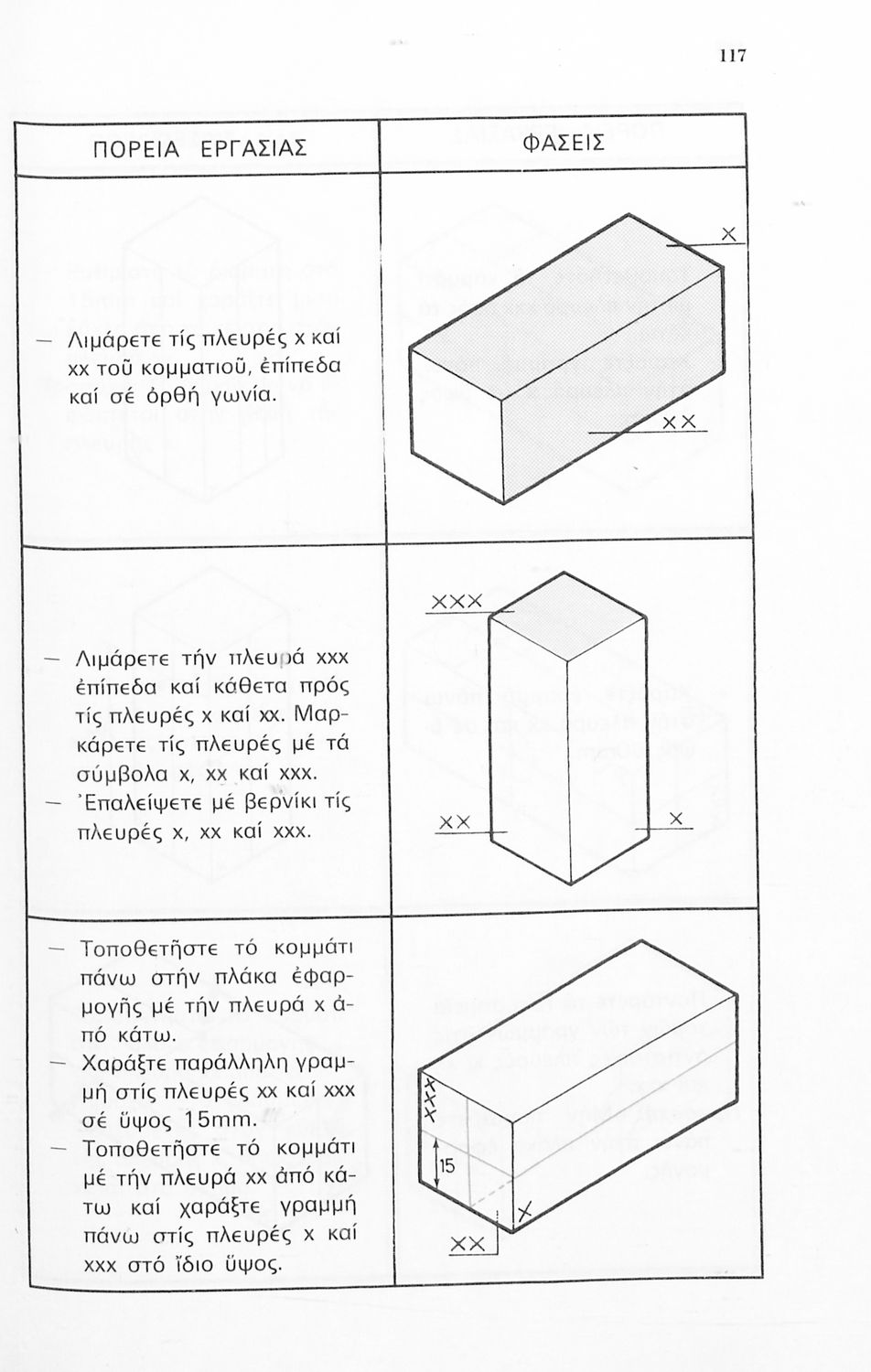 Σχολικό εγχειρίδιο για την Α' τάξη του Μηχανολογικού τμήματος των Τεχνικών Σχολών νέου τύπου. Το βιβλίο περιλαμβάνει δέκα εργαστηριακές ασκήσεις για τη μέτρηση διαστάσεων και τα εργαλεία που χρησιμοποιούνται για χάραξη, συγκράτηση, κρούση και κοπή, στο χώρο των μεταλλικών κατασκευών.