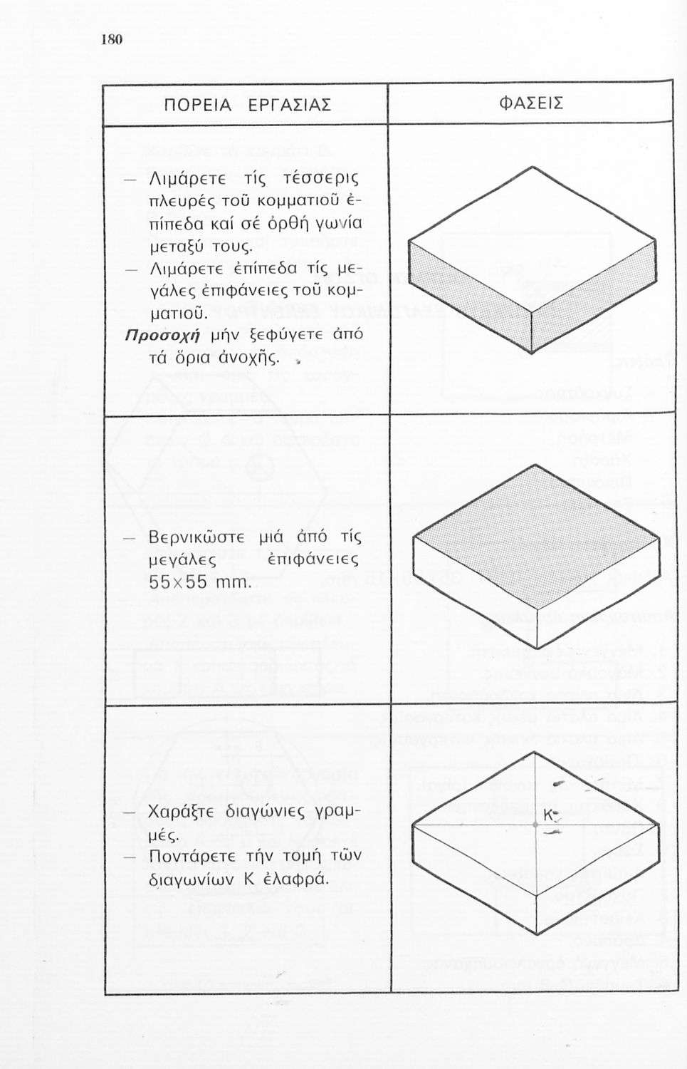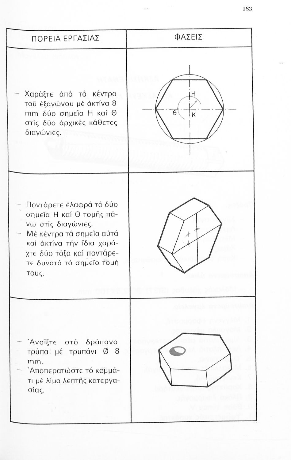 Παρουσίαση περιεχομένου: Σχολικό εγχειρίδιο για την Α' τάξη του Μηχανολογικού τμήματος των Τεχνικών Σχολών νέου τύπου. Το βιβλίο περιλαμβάνει δέκα εργαστηριακές ασκήσεις για τη μέτρηση διαστάσεων και τα εργαλεία που χρησιμοποιούνται για χάραξη, συγκράτηση, κρούση και κοπή, στο χώρο των μεταλλικών κατασκευών.