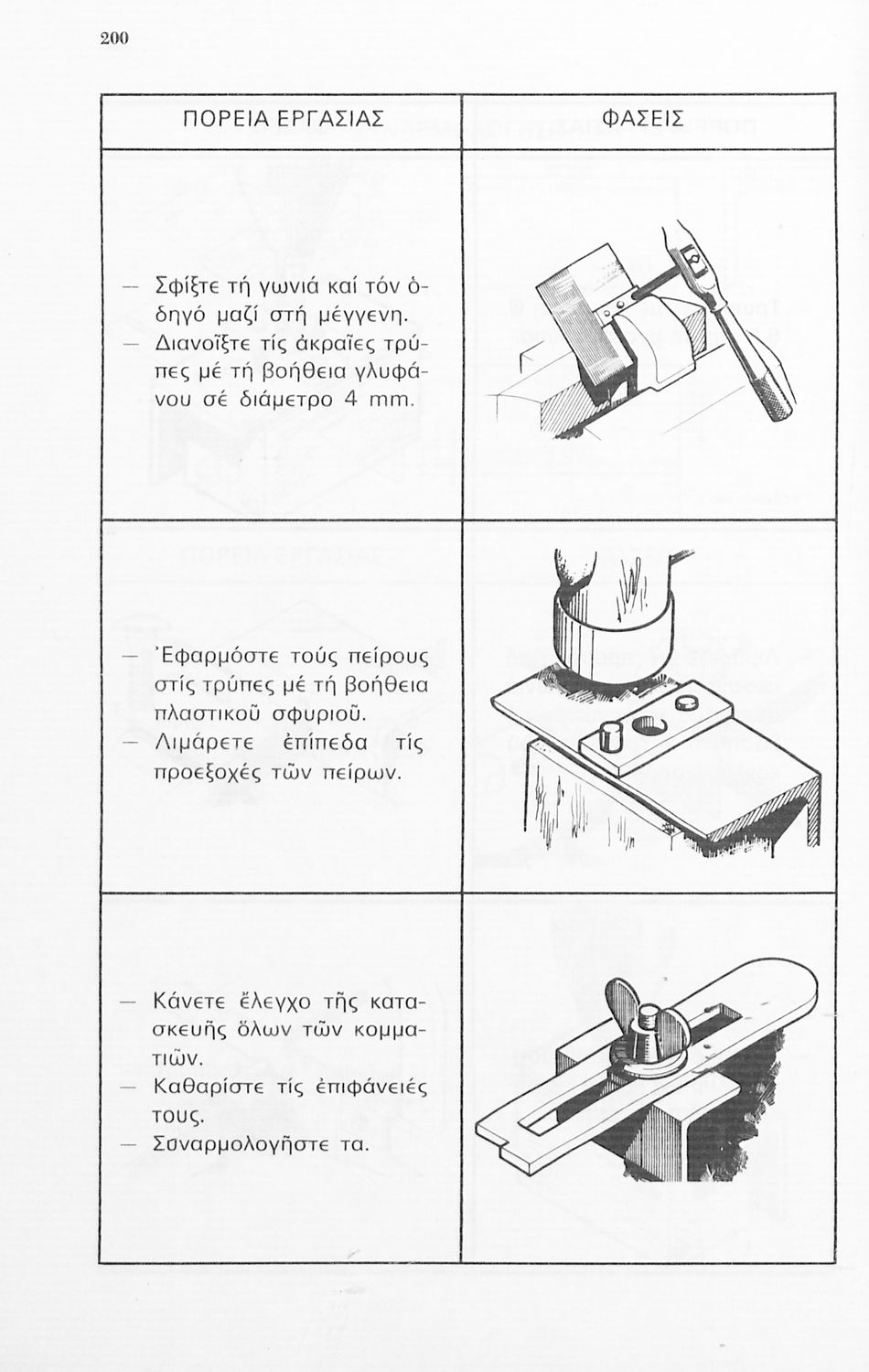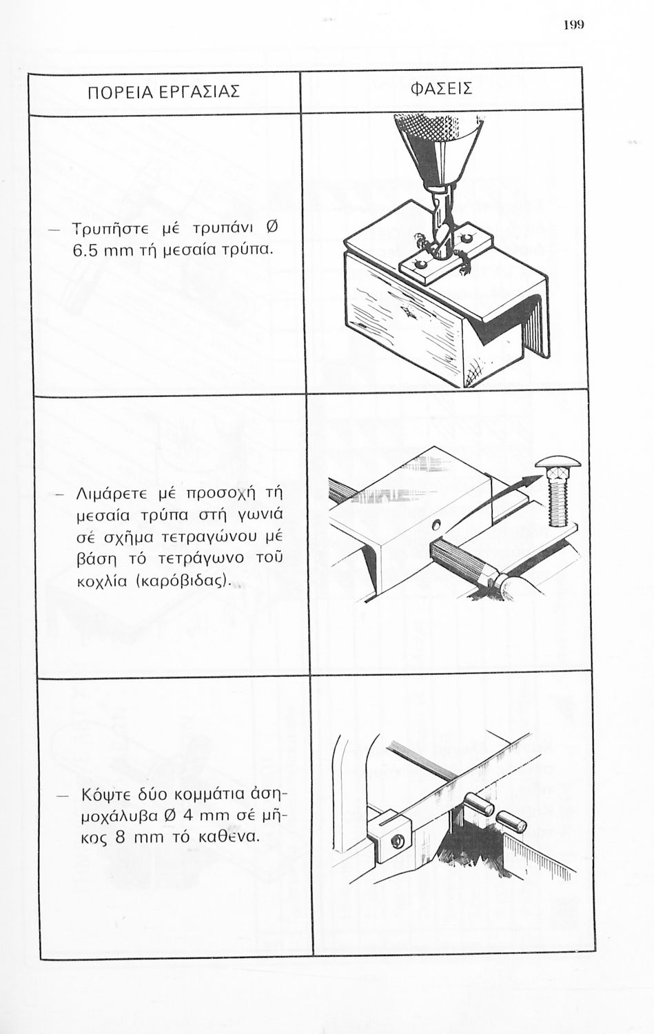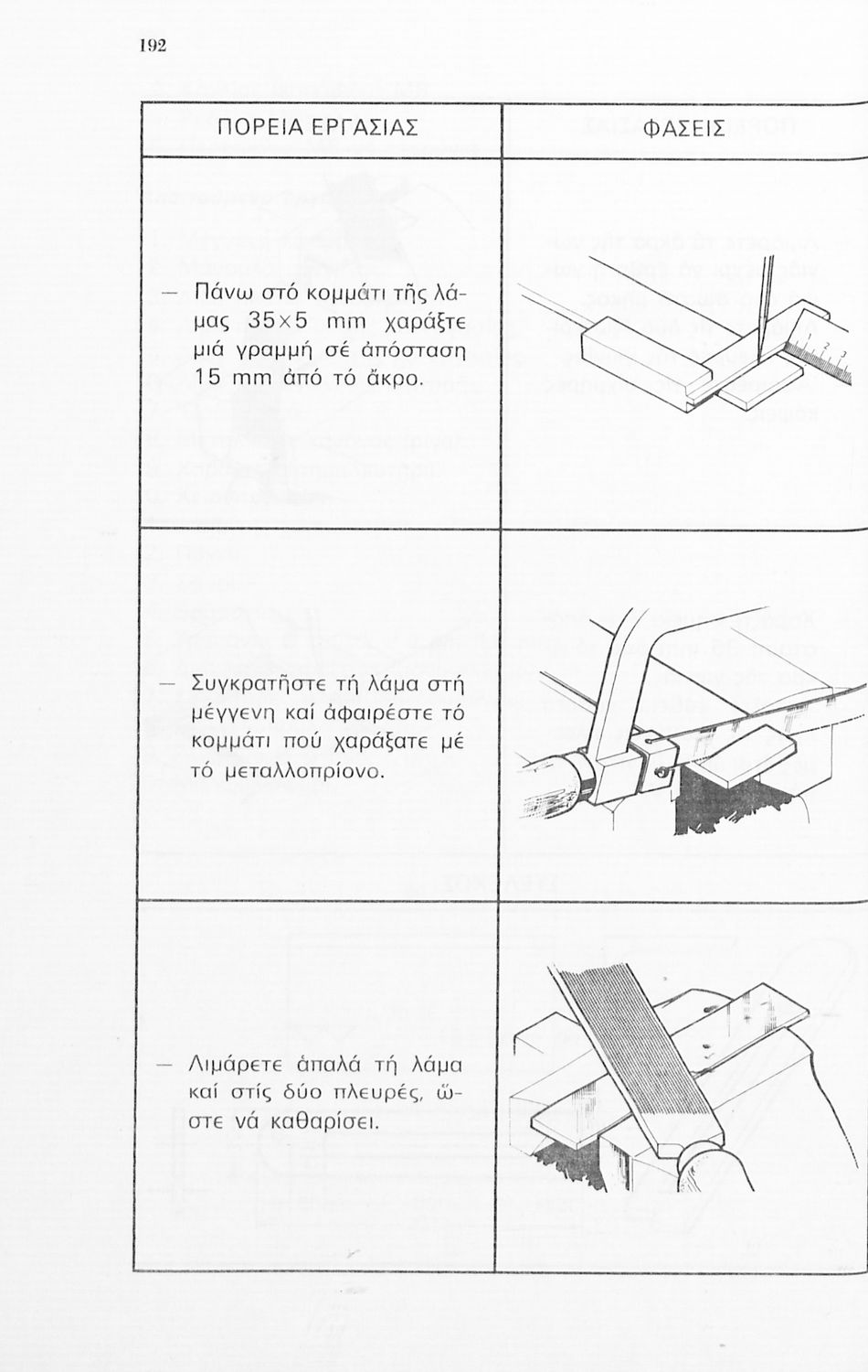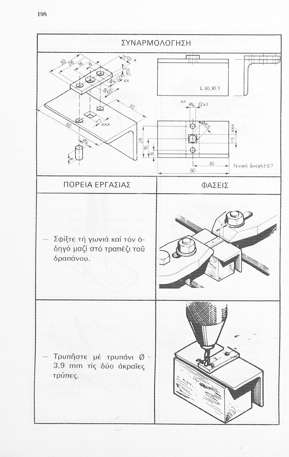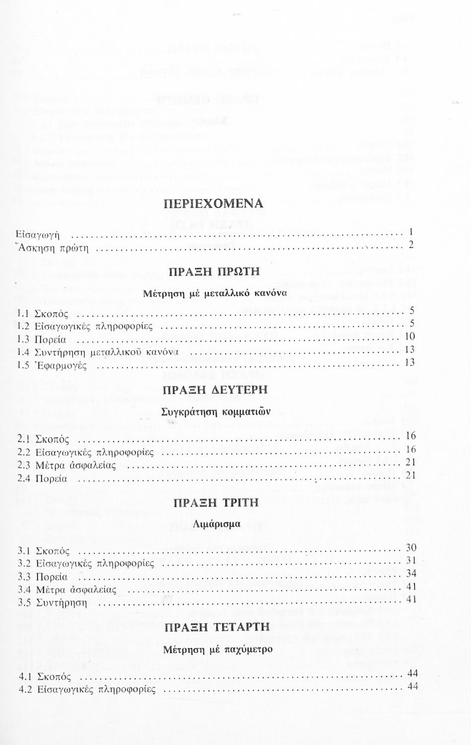 Σχολικό εγχειρίδιο για την Α' τάξη του Μηχανολογικού τμήματος των Τεχνικών Σχολών νέου τύπου. Το βιβλίο περιλαμβάνει δέκα εργαστηριακές ασκήσεις για τη μέτρηση διαστάσεων και τα εργαλεία που χρησιμοποιούνται για χάραξη, συγκράτηση, κρούση και κοπή, στο χώρο των μεταλλικών κατασκευών.