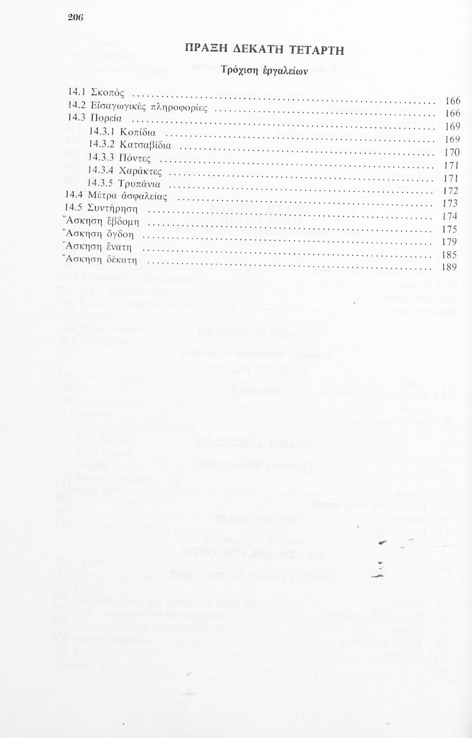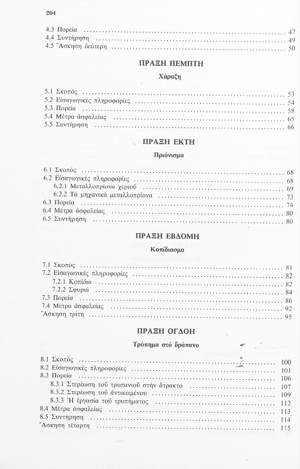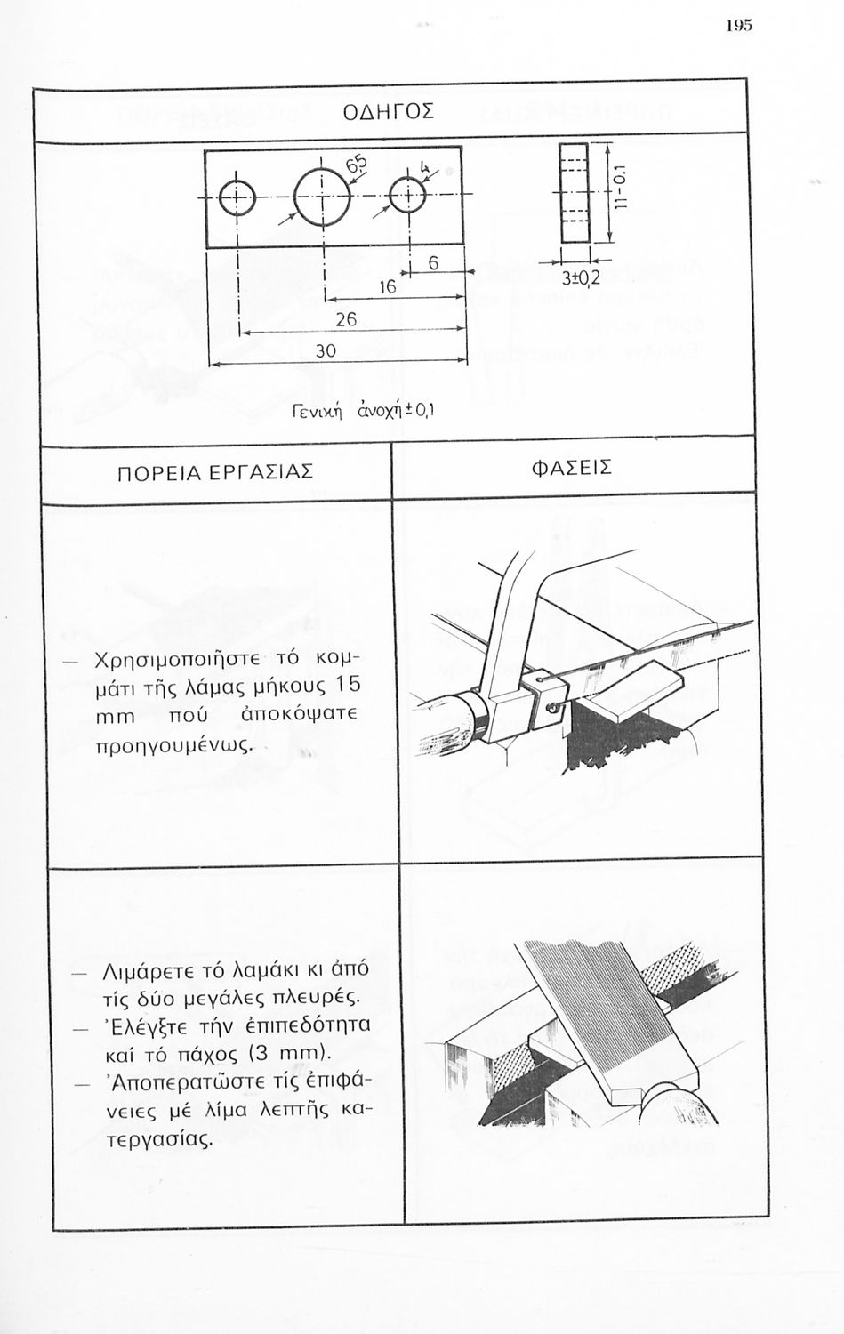 Βαθμίδα εκπαίδευσης: Δευτεροβάθμια Τάξη: Α' Μέσων Τεχνικών - Επαγγελματικών Σχολών Μάθημα: Μηχανολογία Γλώσσα: Δημοτική Παρουσίαση περιεχομένου: Σχολικό εγχειρίδιο για την Α' τάξη του Μηχανολογικού τμήματος των Τεχνικών Σχολών νέου τύπου. Το βιβλίο περιλαμβάνει δέκα εργαστηριακές ασκήσεις για τη μέτρηση διαστάσεων και τα εργαλεία που χρησιμοποιούνται για χάραξη, συγκράτηση, κρούση και κοπή, στο χώρο των μεταλλικών κατασκευών. |