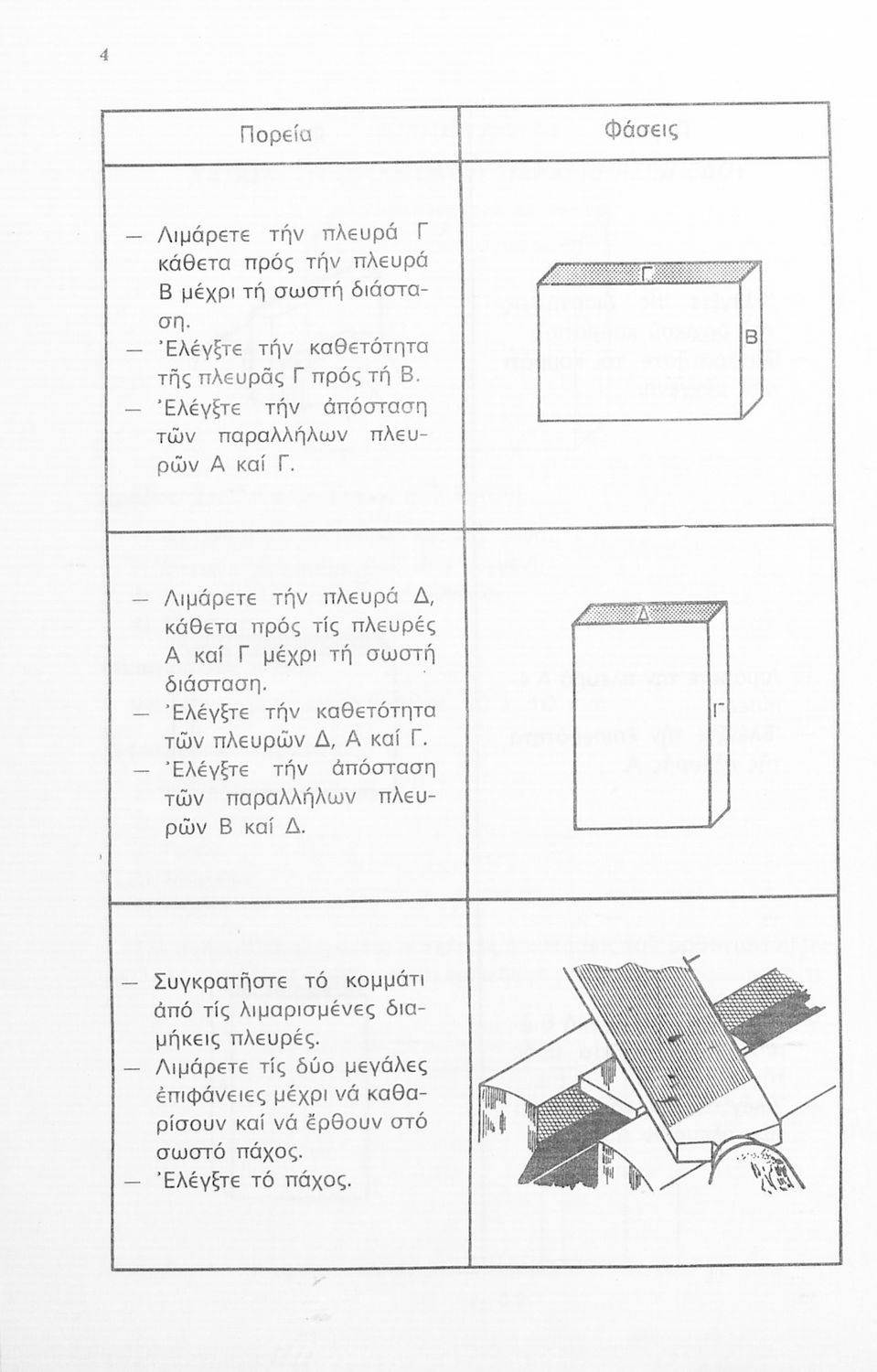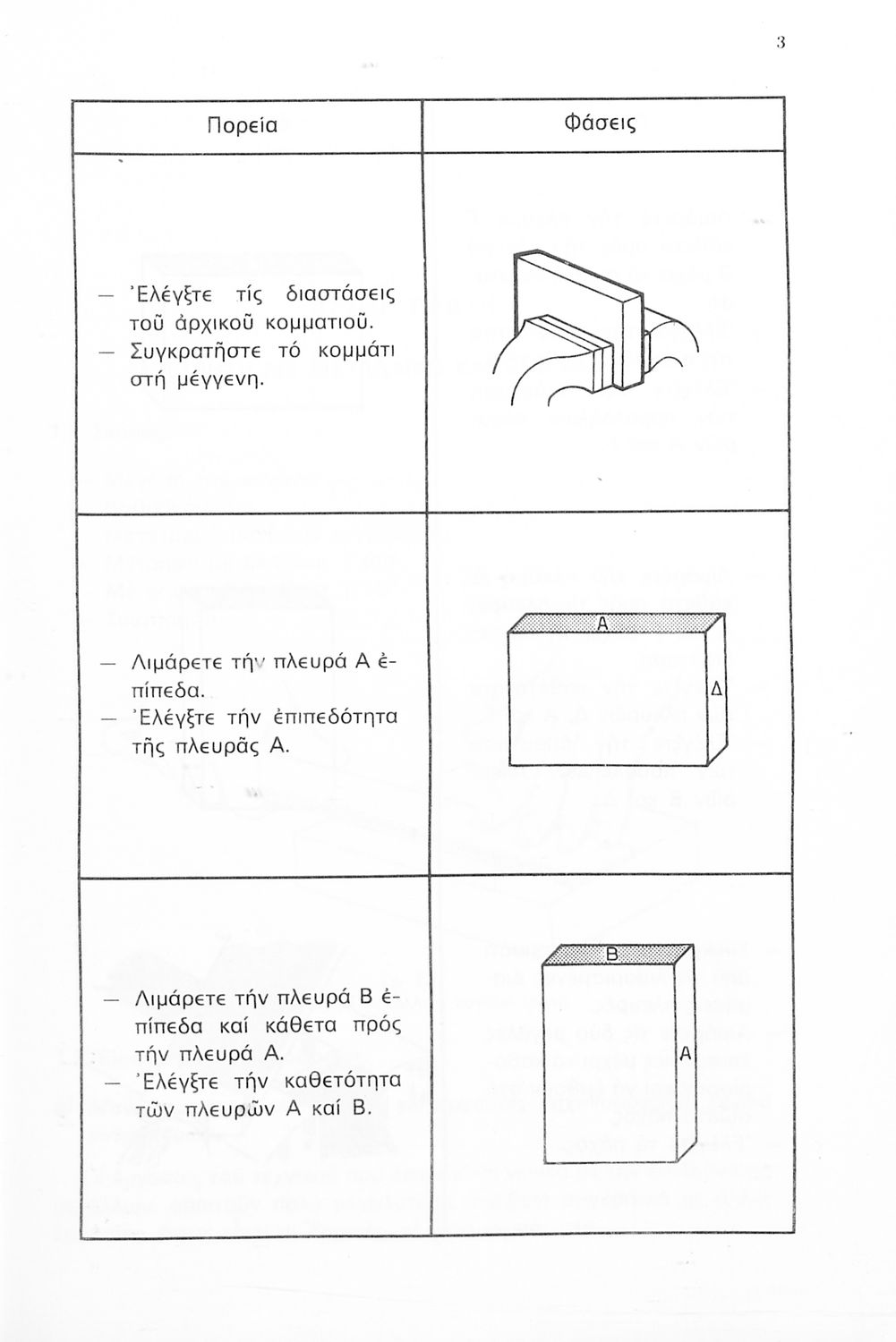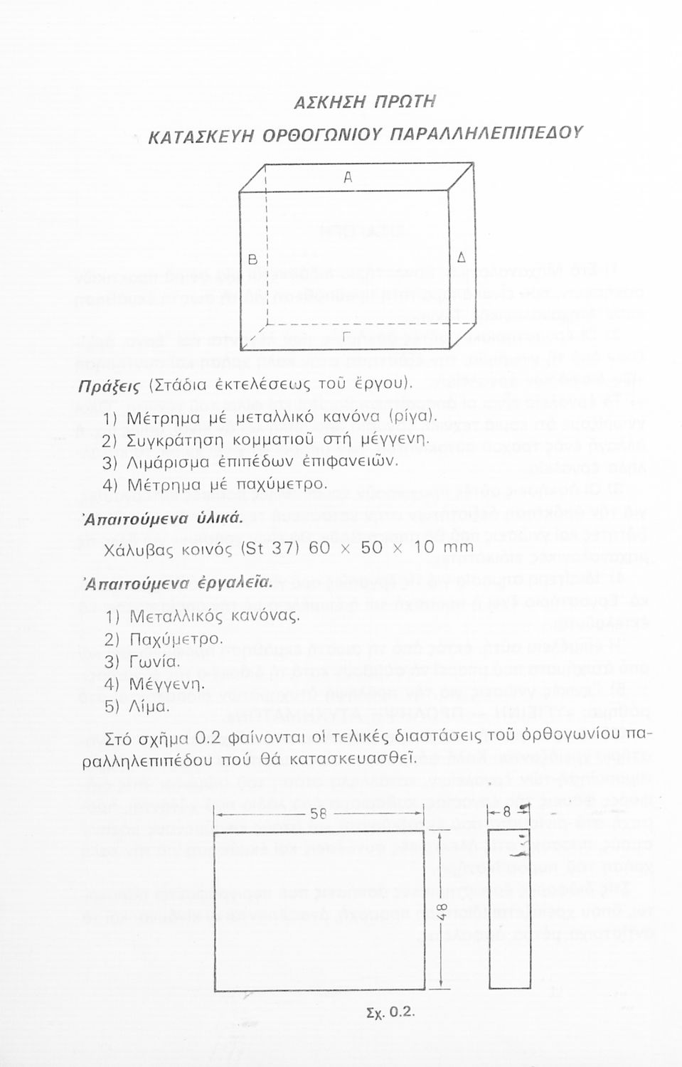 Σχολικό εγχειρίδιο για την Α' τάξη του Μηχανολογικού τμήματος των Τεχνικών Σχολών νέου τύπου. Το βιβλίο περιλαμβάνει δέκα εργαστηριακές ασκήσεις για τη μέτρηση διαστάσεων και τα εργαλεία που χρησιμοποιούνται για χάραξη, συγκράτηση, κρούση και κοπή, στο χώρο των μεταλλικών κατασκευών.