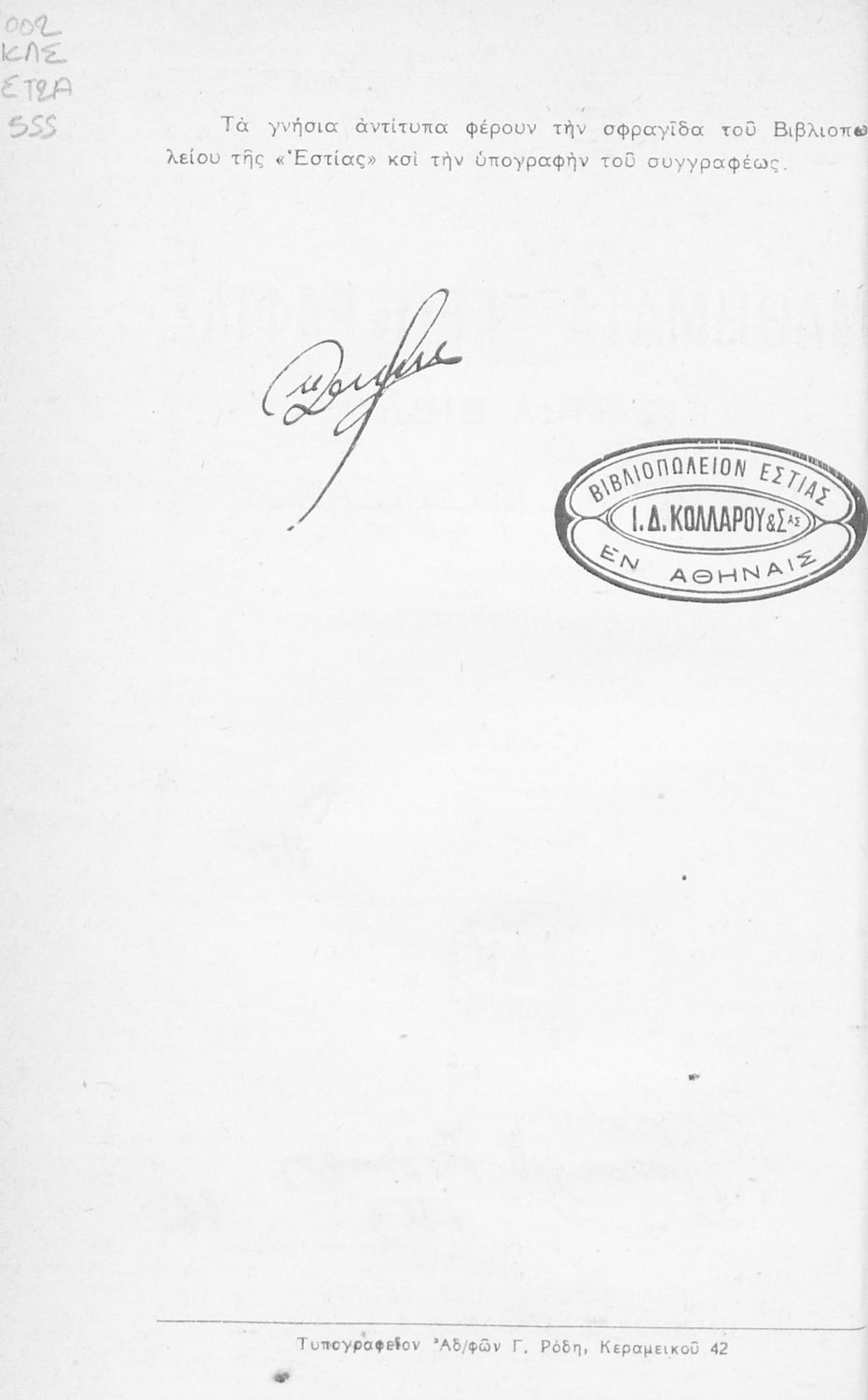 Εκδότης: Ιωάννης Δ. Κολλάρος και ΣΙΑ, Βιβλιοπωλείο της "Εστίας"