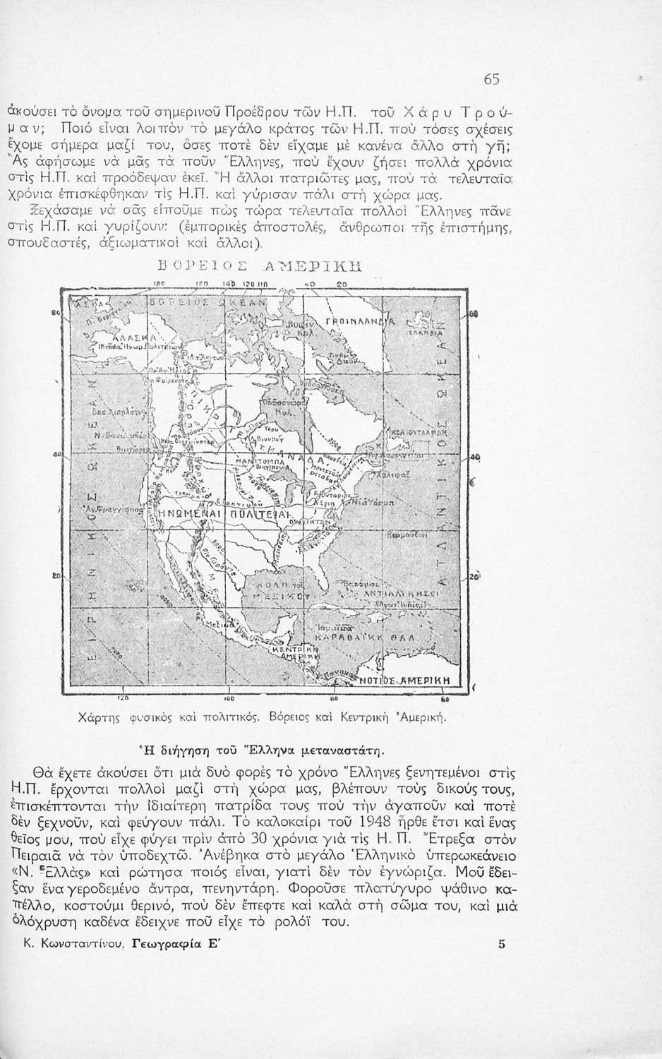 Πρόκειται για σχολικό εγχειρίδιο το οποίο μέσα από πλούσια εικονογράφηση προοριζόταν για τη διδασκαλία του μαθήματος της Γεωγραφίας στην Ε΄ και ΣΤ΄ Δημοτικού. Φέρει την υπογραφή του συγγραφέα και τη σφραγίδα ...