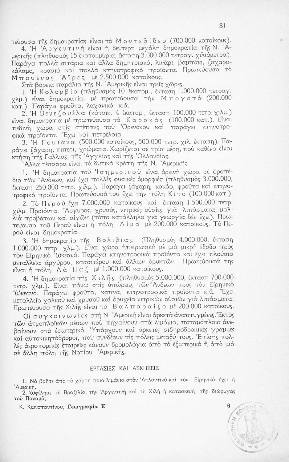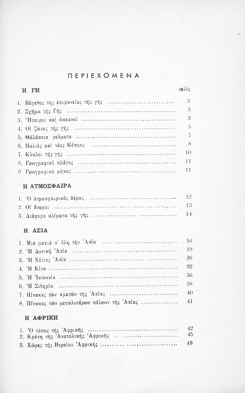 Πρόκειται για σχολικό εγχειρίδιο το οποίο μέσα από πλούσια εικονογράφηση προοριζόταν για τη διδασκαλία του μαθήματος της Γεωγραφίας στην Ε΄ και ΣΤ΄ Δημοτικού. Φέρει την υπογραφή του συγγραφέα και τη σφραγίδα ...