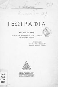 Κωδικός αναγνώρισης: 03-20560476 Τίτλος: Γεωγραφία για την Ε΄ τάξη και το 1ο έτος συνδιδασκαλίας Ε΄ και ΣΤ΄ τάξεων του Δημοτικού Σχολείου Συγγραφέας: Κ. Κωνσταντίνου Μέγεθος και υπόστρωμα: Μαθητικό βοήθημα, μαλακό εξώφυλλο, 86 σελίδες. Χάρτες (ασπρόμαυροι). |