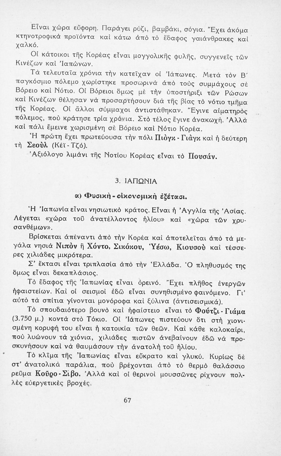 Πρόκειται για σχολικό εγχειρίδιο το οποίο προοριζόταν για τη διδασκαλία του μαθήματος της Γεωγραφίας στην Ε΄ και ΣΤ΄ Δημοτικού. Φέρει λίγες προσωπικές σημειώσεις του μαθητή και το εξώφυλλο παρουσιάζεται αρκετά