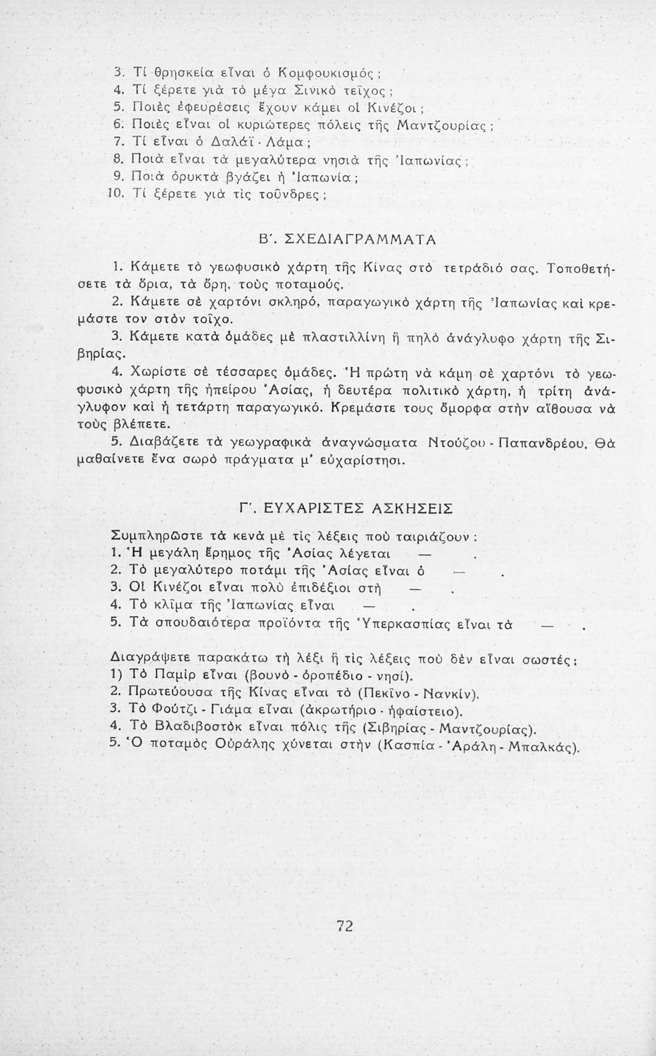 Τάξη:  Δ' Δημοτικού / Ε' Δημοτικού / ΣΤ' Δημοτικού / Παρθεναγωγείο / Αστικό Σχολείο