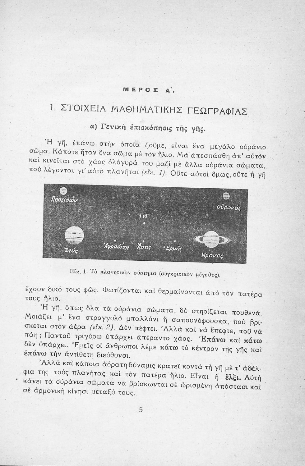 Σχολικό εγχειρίδιο Γεωγραφίας για τις Ε΄ και ΣΤ΄ Δημοτικού που περιλαμβάνει στοιχεία μαθηματικής και φυσικής γεωγραφίας, γεωλογίας και κοσμογραφίας, και εξετάζει την Ελλάδα και ενδεικτικές χώρες από τις πέντε ...