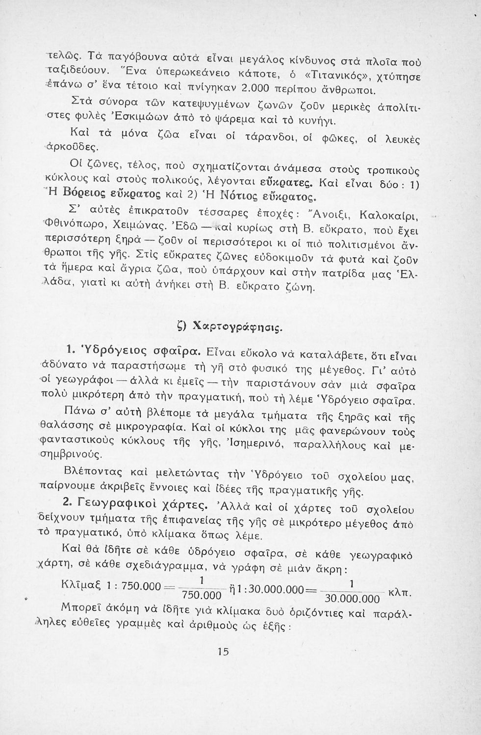 Πρόκειται για σχολικό εγχειρίδιο το οποίο προοριζόταν για τη διδασκαλία του μαθήματος της Γεωγραφίας στην Ε΄ και ΣΤ΄ Δημοτικού. Φέρει λίγες προσωπικές σημειώσεις του μαθητή και το εξώφυλλο παρουσιάζεται αρκετά