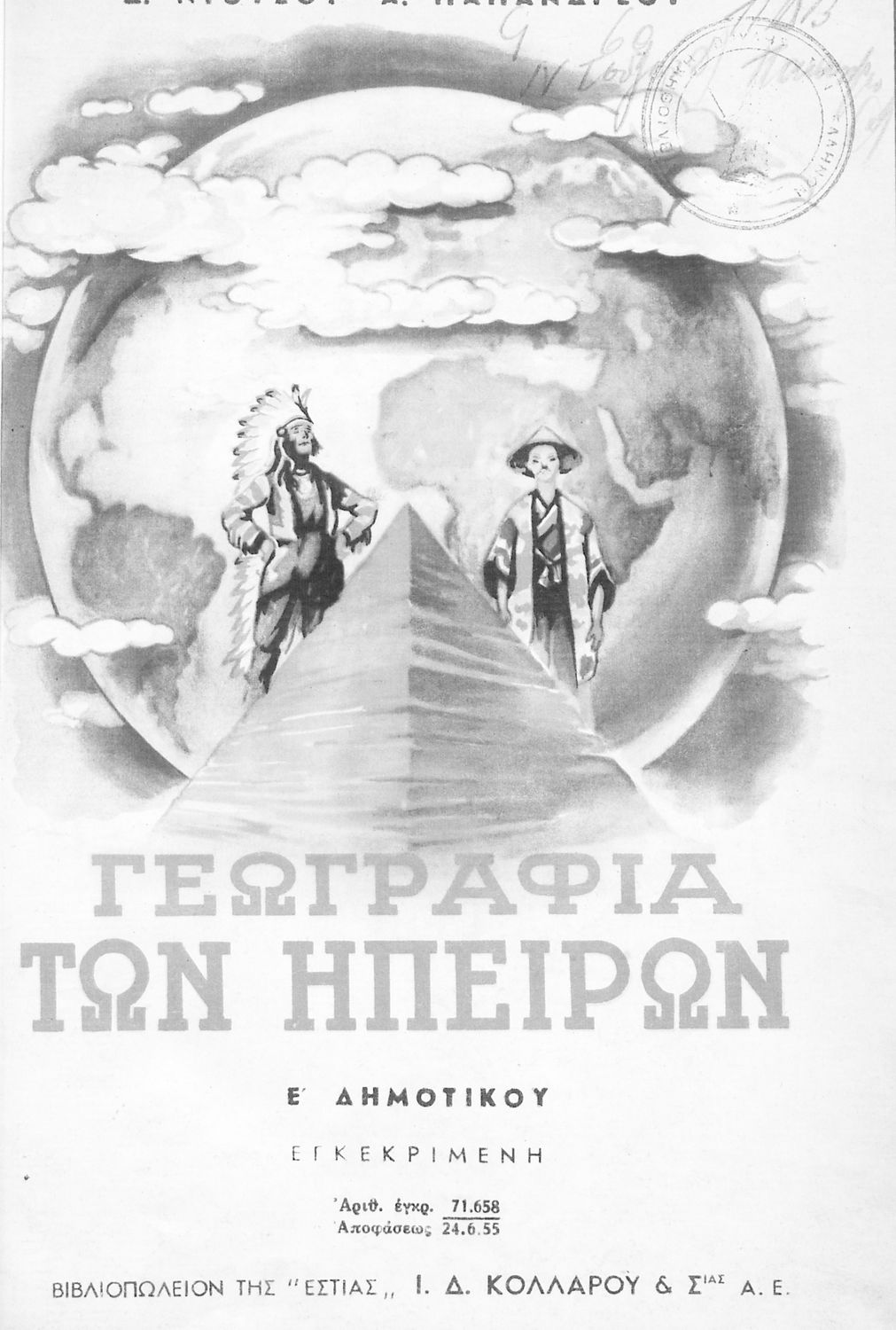 Μαθητικό/εκπαιδευτικό βοήθημα Γεωγραφίας Ε΄ Δημοτικού που δεν αποσκοπεί στη διδασκαλία της ύλης της γεωγραφίας αλλά στο να "δώσει στον μαθητή αφορμή για μια γενικότερη εξέταση της απεικονιζόμενης χώρας" και ...