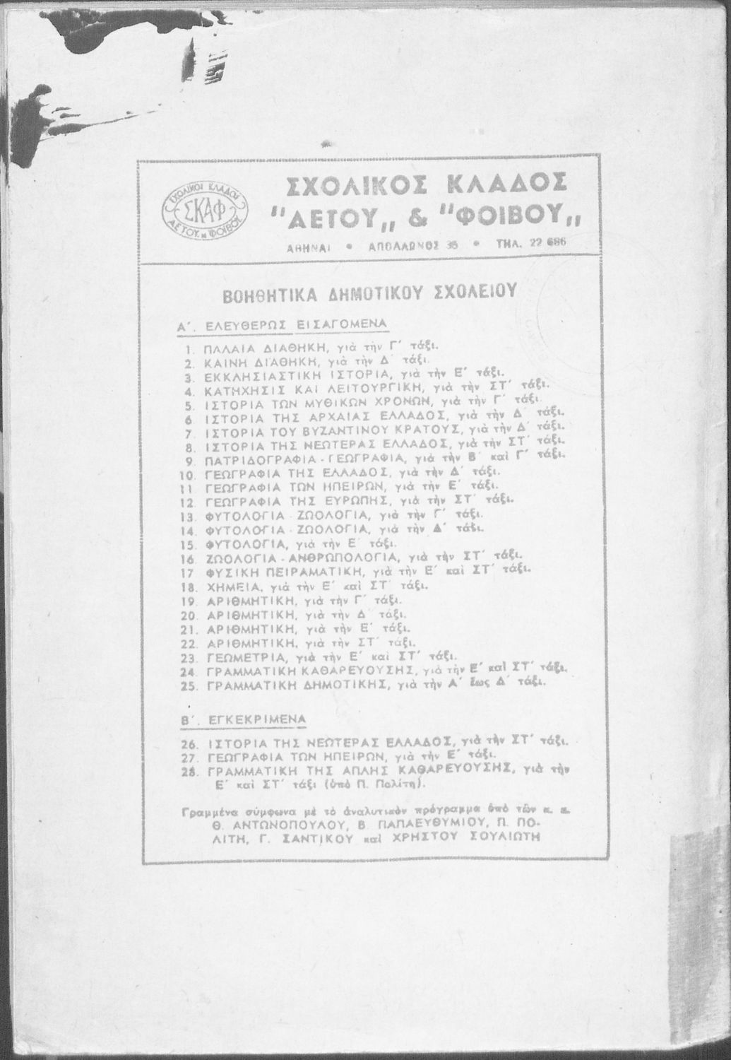 Εκδότης: Σχολικός κλάδος "Αετός" και "Φοίβος"