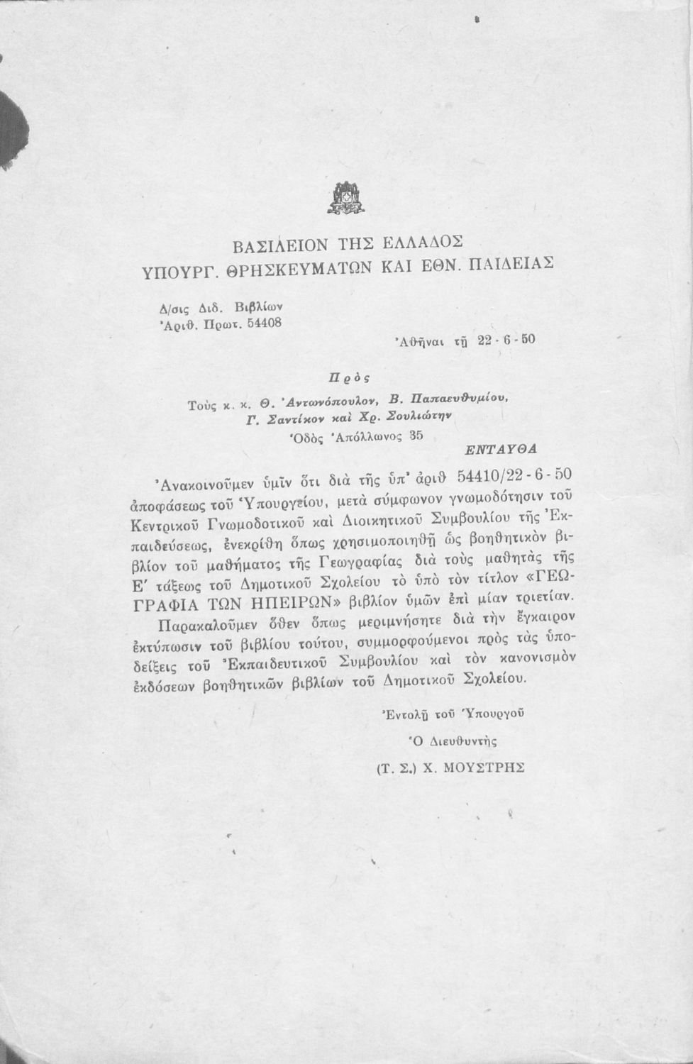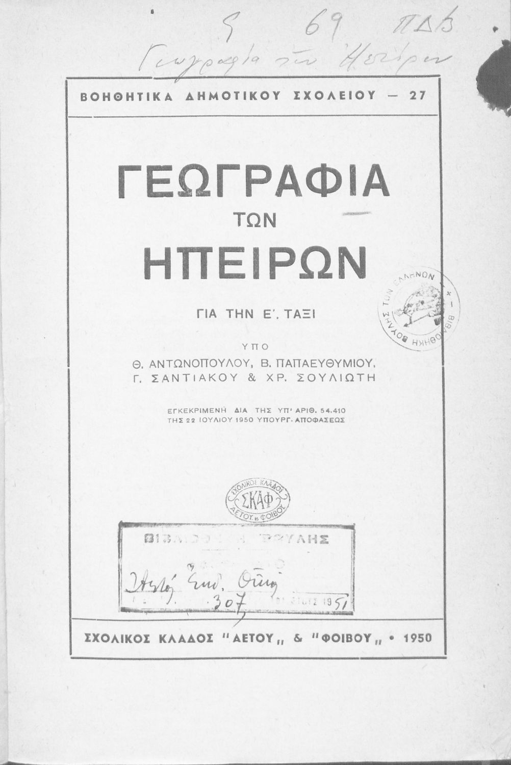 Εκδότης: Σχολικός κλάδος "Αετός" και "Φοίβος" Έτος έκδοσης: 1950 Τόπος έκδοσης: Αθήνα Υπουργική απόφαση / Σύμβαση: 54.410/22-7-1950 Έτος έγκρισης: 1950 |