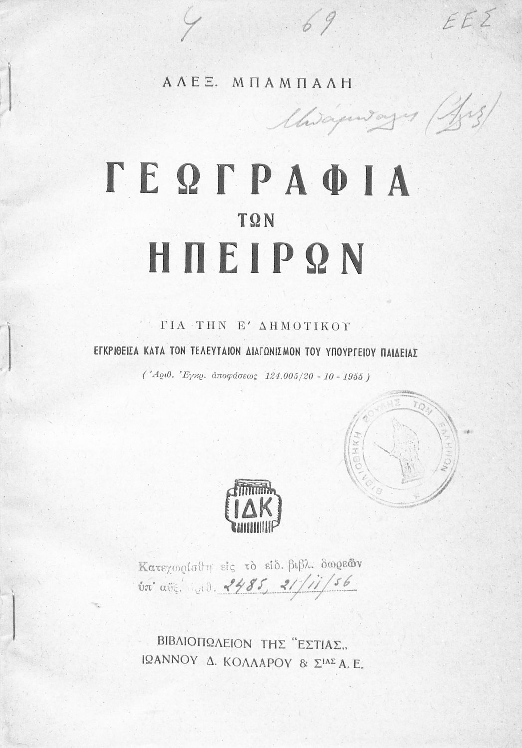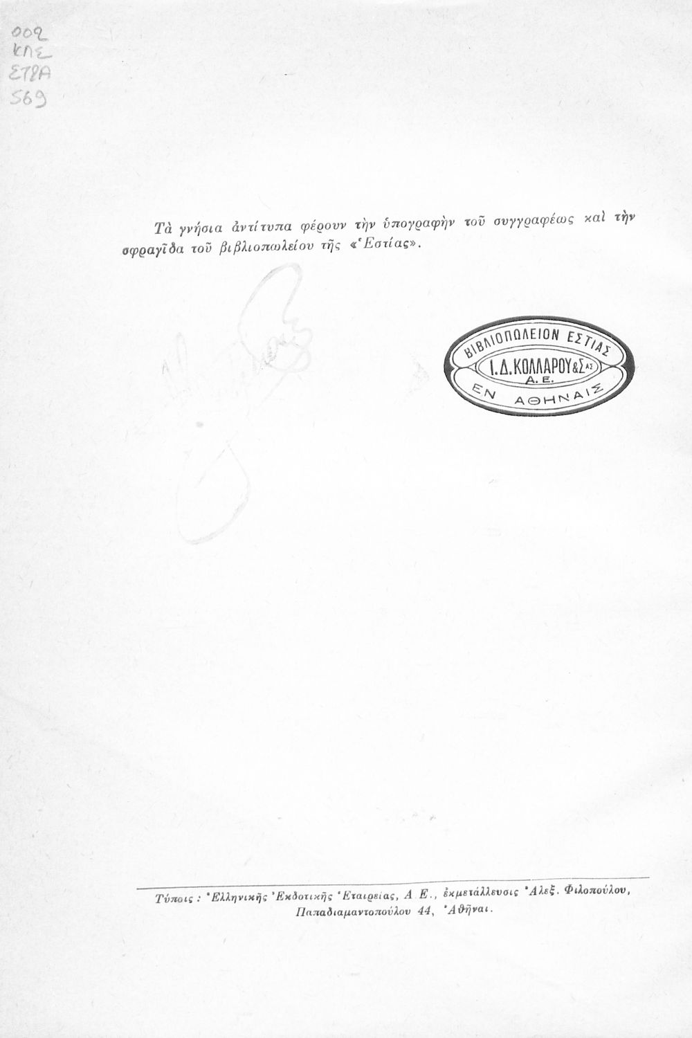 Εκδότης: Βιβλιοπωλείο της "Εστίας" Έτος έκδοσης: 1956 Τόπος έκδοσης: Αθήνα Υπουργική απόφαση / Σύμβαση: 124005/20-10-1955 Έτος έγκρισης: 1955 |