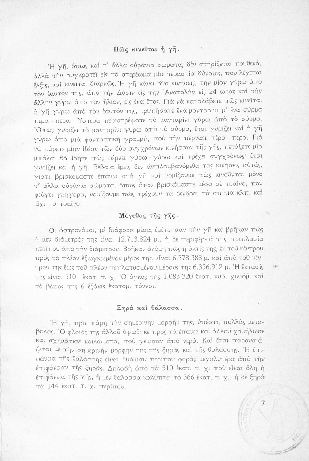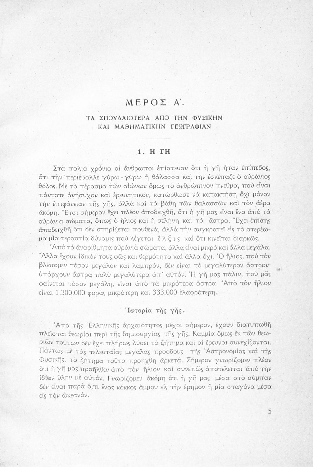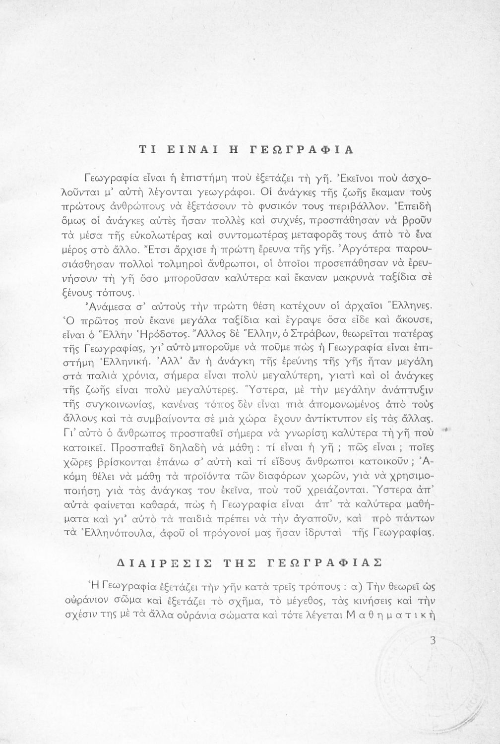 Βαθμίδα εκπαίδευσης: Πρωτοβάθμια Τάξη: Ε' Δημοτικού Μάθημα: Γεωγραφία Γλώσσα: Απλή καθαρεύουσα Παρουσίαση περιεχομένου: Μαθητικό βοήθημα Γεωγραφίας Ε΄ Δημοτικού που περιλαμβάνει εισαγωγή στη φυσική, μαθηματική και πολιτική γεωγραφία και εξετάζει ενδεικτικές χώρες και περιοχές από τις πέντε ηπείρους εκτός της Ευρώπης. |