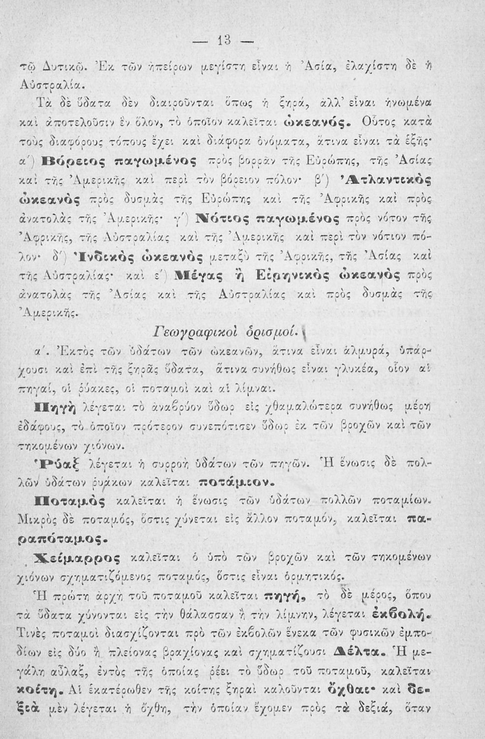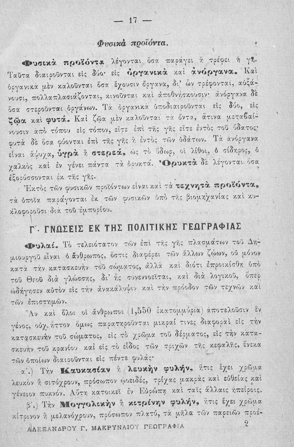 Κωδικός αναγνώρισης: 03-20560500 Τίτλος: Γεωγραφία προς χρήσιν των μαθητών των πλήρων Δημοτικών Σχολείων Συγγραφέας: Αλεξ. Γ. Μακρυναίος Μέγεθος και υπόστρωμα: Σχολικό εγχειρίδιο, σκληρό εξώφυλλο, 176 σελίδες. Σκίτσα, εικόνες (ασπρόμαυρα). |
