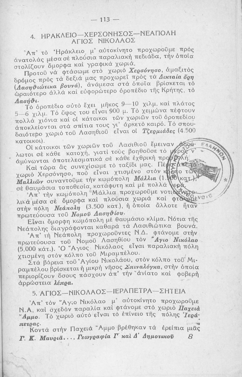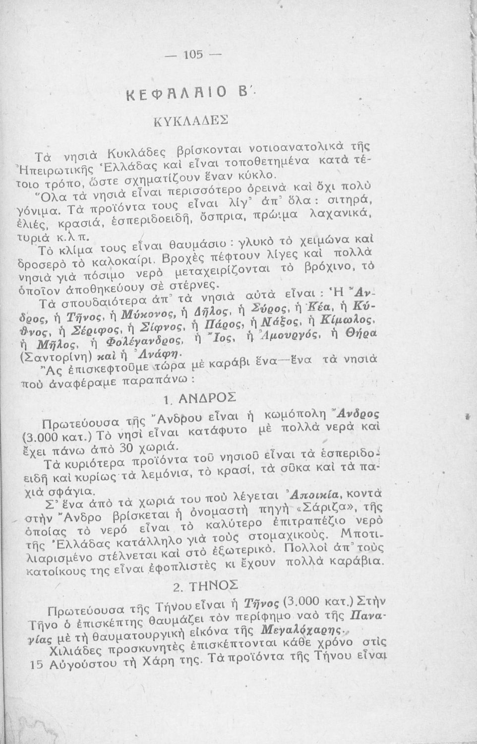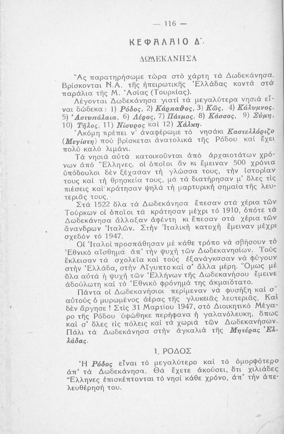Σχολικό εγχειρίδιο Γεωγραφίας για τις Γ΄, Δ΄, Ε΄, ΣΤ΄ Δημοτικού που περιλαμβάνει εισαγωγή στην πατριδογνωσία και παρουσιάζει την φυσική και πολιτική γεωγραφία της Παλαιάς και Νέας Ελλάδας.