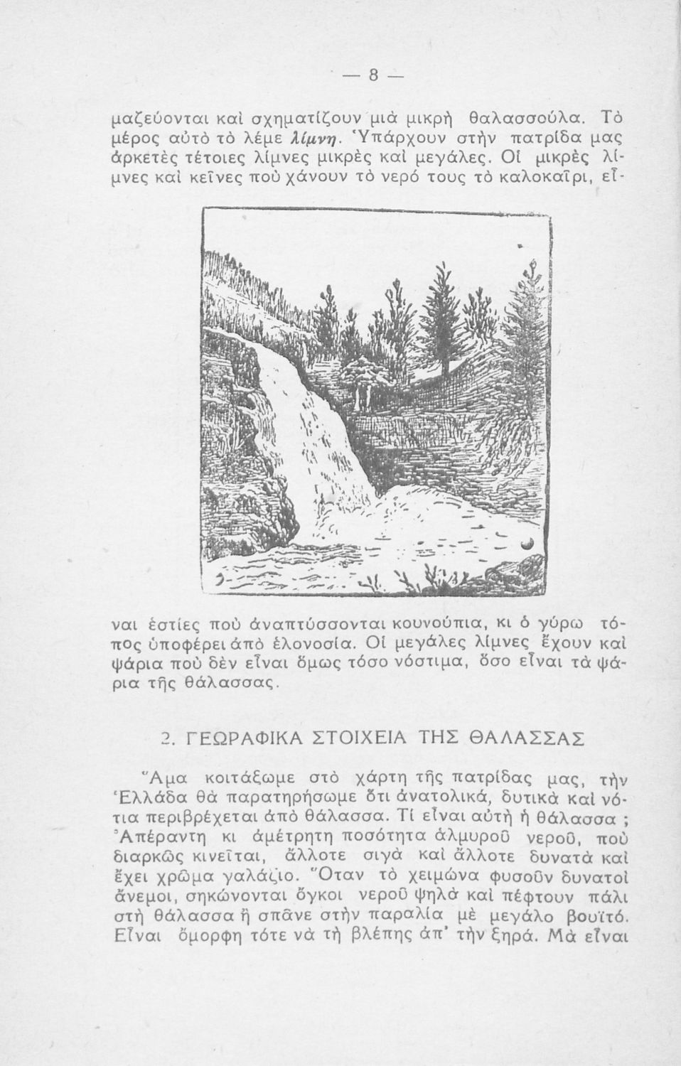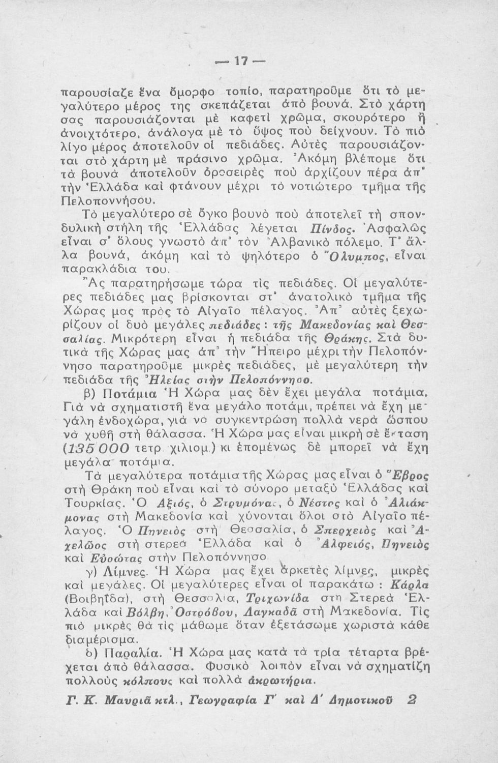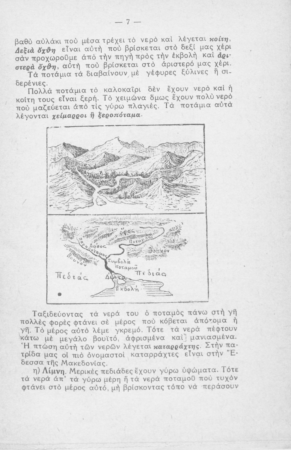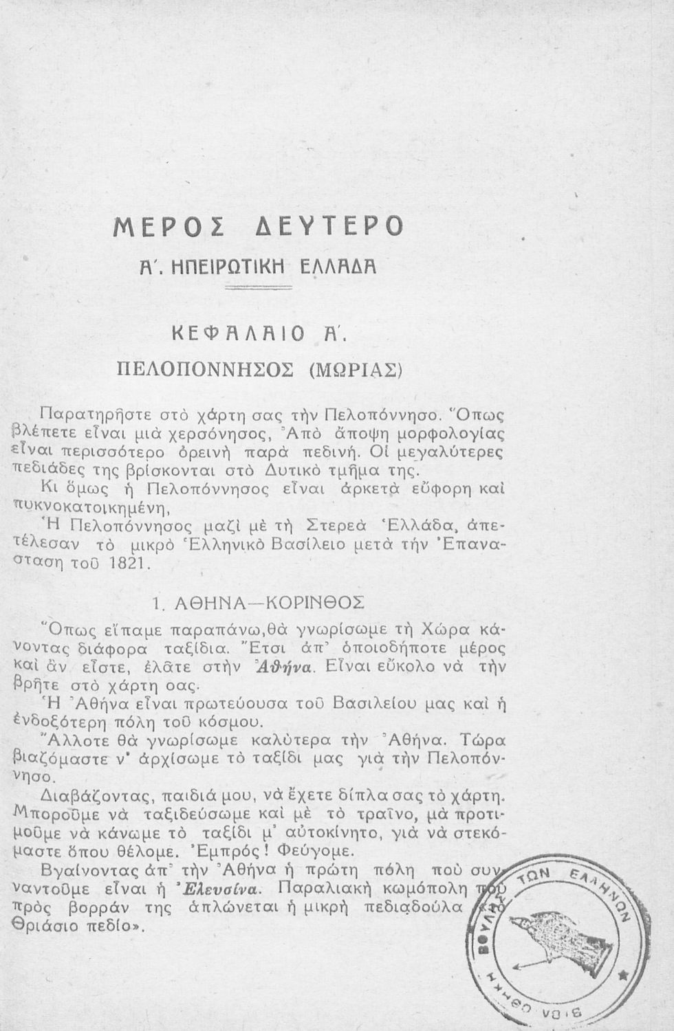 Σχολικό εγχειρίδιο για την Γ΄ και Δ΄ Δημοτικού για το μάθημα της Γεωγραφίας. Το εγχειρίδιο αποτελείται από 3 κύρια μέρη. Το πρώτο μέρος περιλαμβάνει γεωγραφικά στοιχεία της ξηράς, της θάλασσας, την γεωμορφολογική σύσταση της Ελλάδας. Το δεύτερο μέρος περιλαμβάνει την ηπειρωτική Ελλάδα και το τρίτο ασχολείται με την νησιωτική Ελλάδα.