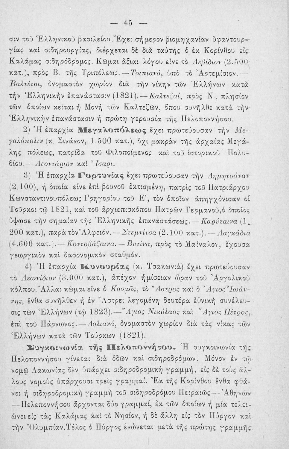 Σχολικό εγχειρίδιο Γεωγραφίας Δημοτικού που παρουσιάζει την φυσική, οικονομική και πολιτική γεωγραφία της Παλαιάς και Νέας Ελλάδας. Περιέχει και εκτενή αναφορά στις "λοιπές ελληνικές χώρες" στις οποίες περιλαμβάνει την Σερβική και Βουλγαρική Μακεδονία, τη Θράκη, τα Δωδεκάνησα, την Ανατολική Ρωμυλία, την Μικρά Ασία, την Συρία, την Παλαιστίνη και την Κύπρο.