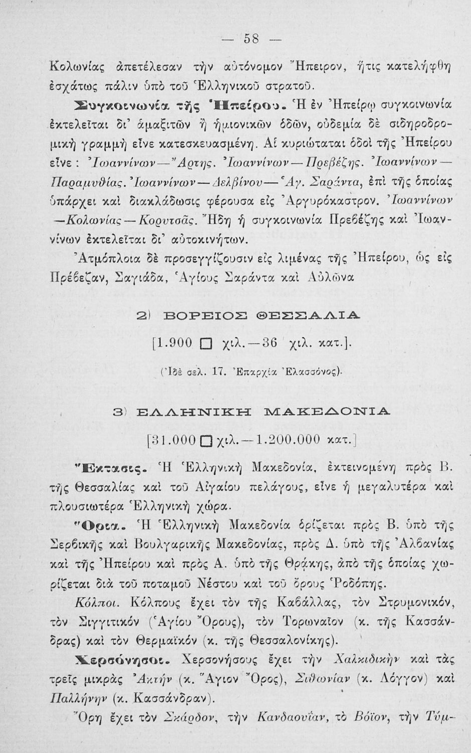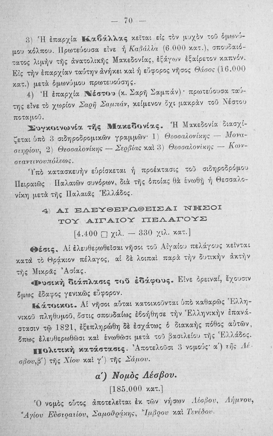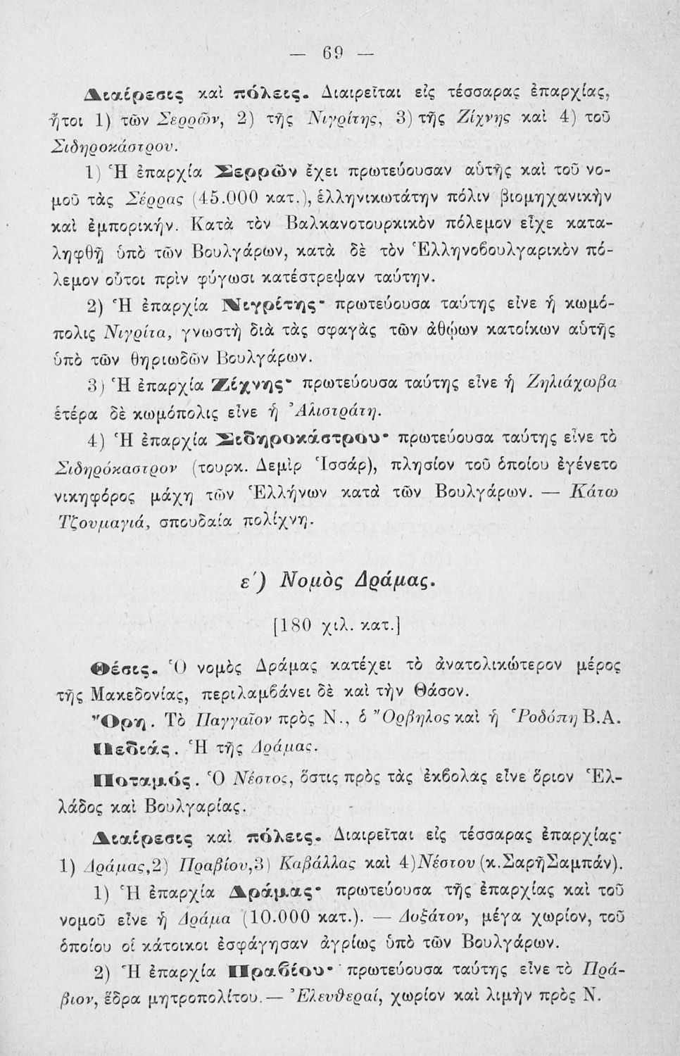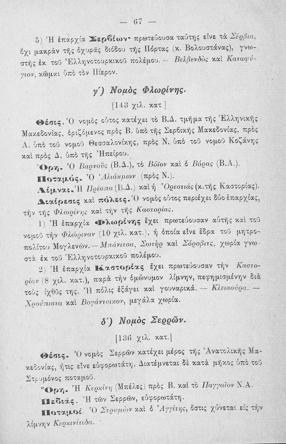 Σχολικό εγχειρίδιο Γεωγραφίας Δημοτικού που παρουσιάζει την φυσική, οικονομική και πολιτική γεωγραφία της Παλαιάς και Νέας Ελλάδας. Περιέχει και εκτενή αναφορά στις "λοιπές ελληνικές χώρες" στις οποίες περιλαμβάνει την Σερβική και Βουλγαρική Μακεδονία, τη Θράκη, τα Δωδεκάνησα, την Ανατολική Ρωμυλία, την Μικρά Ασία, την Συρία, την Παλαιστίνη και την Κύπρο.