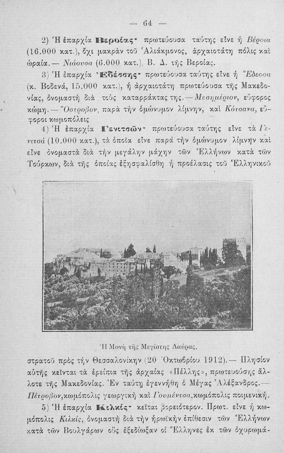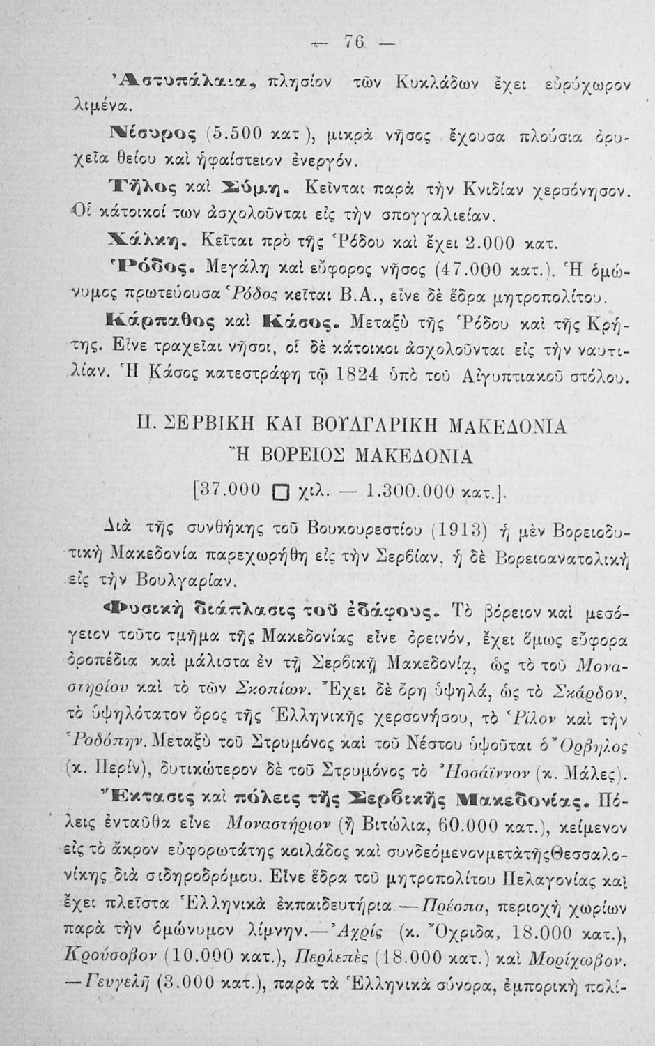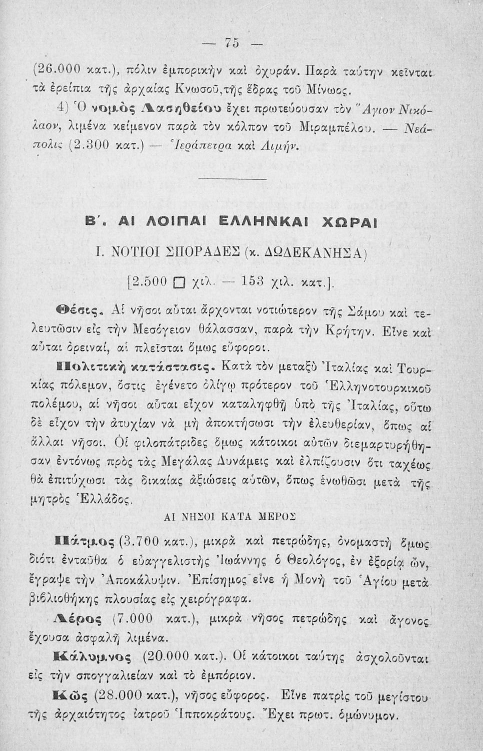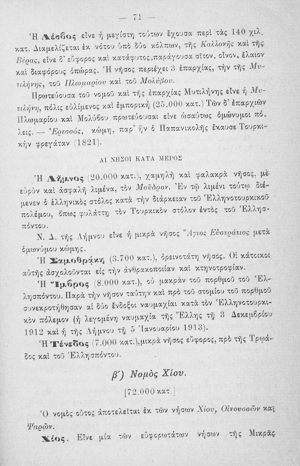 Σχολικό εγχειρίδιο Γεωγραφίας Δημοτικού που παρουσιάζει την φυσική, οικονομική και πολιτική γεωγραφία της Παλαιάς και Νέας Ελλάδας. Περιέχει και εκτενή αναφορά στις "λοιπές ελληνικές χώρες" στις οποίες περιλαμβάνει την Σερβική και Βουλγαρική Μακεδονία, τη Θράκη, τα Δωδεκάνησα, την Ανατολική Ρωμυλία, την Μικρά Ασία, την Συρία, την Παλαιστίνη και την Κύπρο.