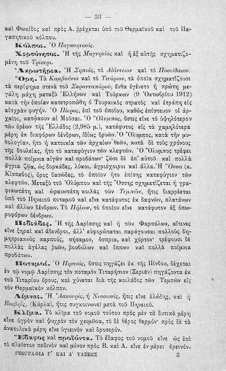 Η Γεωγραφία του Δημοτικού Σχολείου Γ' και Δ' Τάξεως