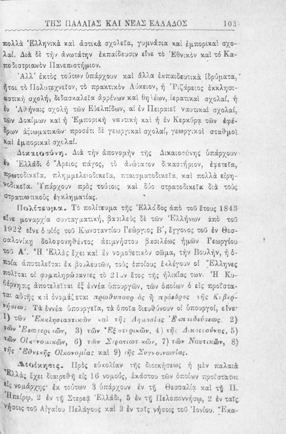 Σχολικό εγχειρίδιο Γεωγραφίας Δημοτικού που παρουσιάζει την φυσική, οικονομική και πολιτική γεωγραφία της Παλαιάς και Νέας Ελλάδας. Περιέχει και εκτενή αναφορά στις "αλύτρωτες ελληνικές χώρες και νησιά" στις οποίες περιλαμβάνει την Σερβική και Βουλγαρική Μακεδονία, τη Θράκη, τα Δωδεκάνησα και την Κύπρο.