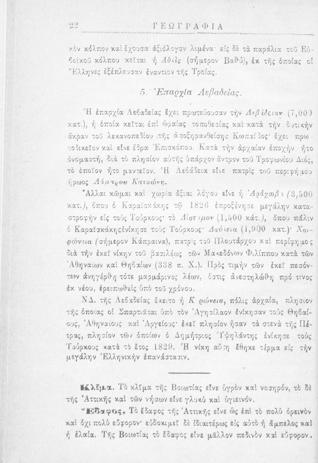 Σχολικό εγχειρίδιο Γεωγραφίας για τα Παρθεναγωγεία και τα Ελληνικά Σχολεία που περιλαμβάνει εισαγωγή στη φυσική, μαθηματική και πολιτική γεωγραφία και εξετάζει την Ελλάδα και ενδεικτικές χώρες και περιοχές από