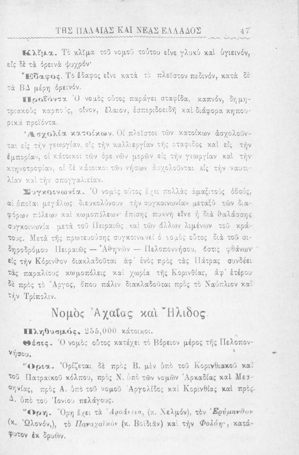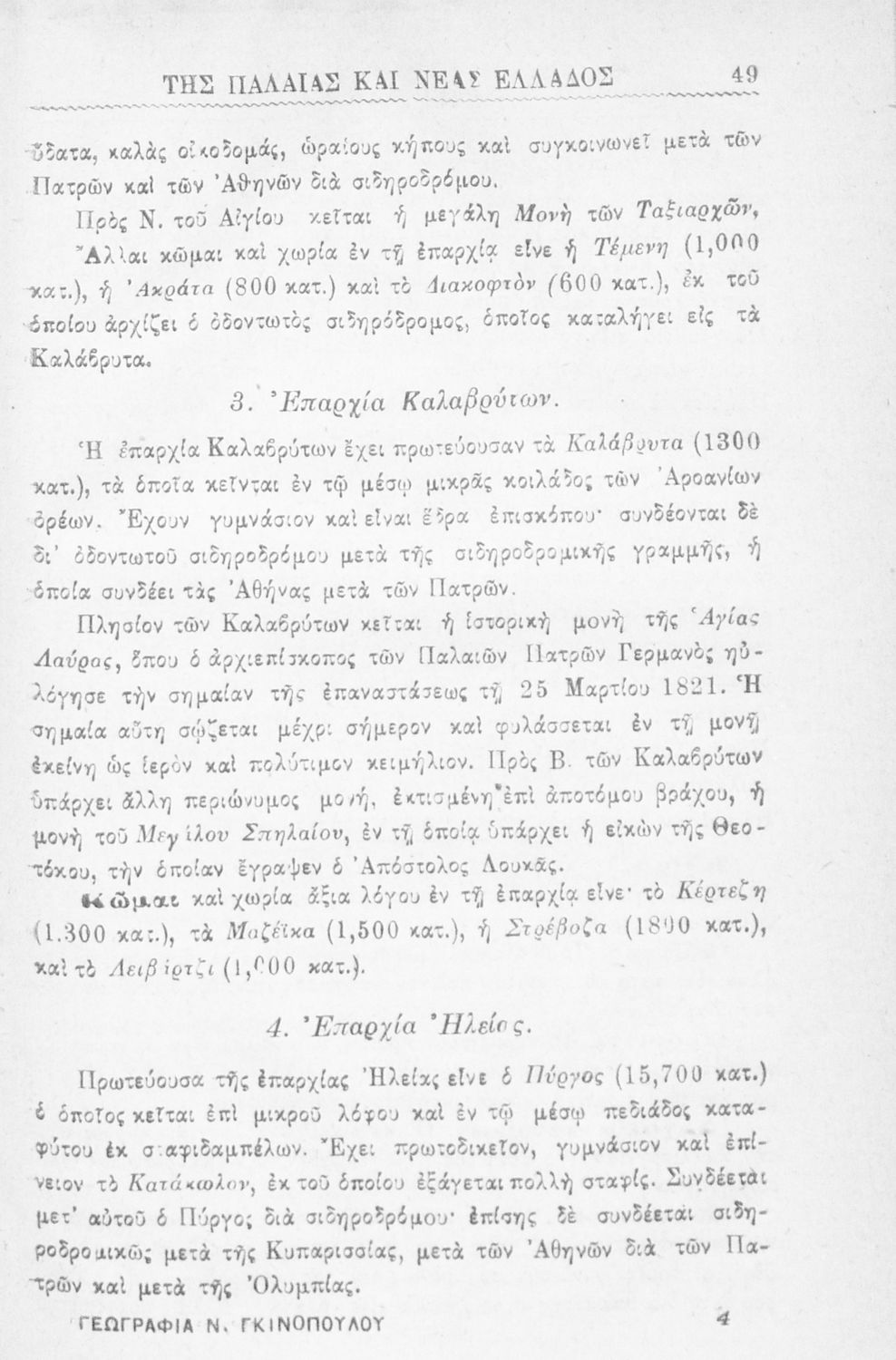 Σχολικό εγχειρίδιο Γεωγραφίας Δημοτικού που παρουσιάζει την φυσική, οικονομική και πολιτική γεωγραφία της Παλαιάς και Νέας Ελλάδας. Περιέχει και εκτενή αναφορά στις "αλύτρωτες ελληνικές χώρες και νησιά" στις οποίες περιλαμβάνει την Σερβική και Βουλγαρική Μακεδονία, τη Θράκη, τα Δωδεκάνησα και την Κύπρο.