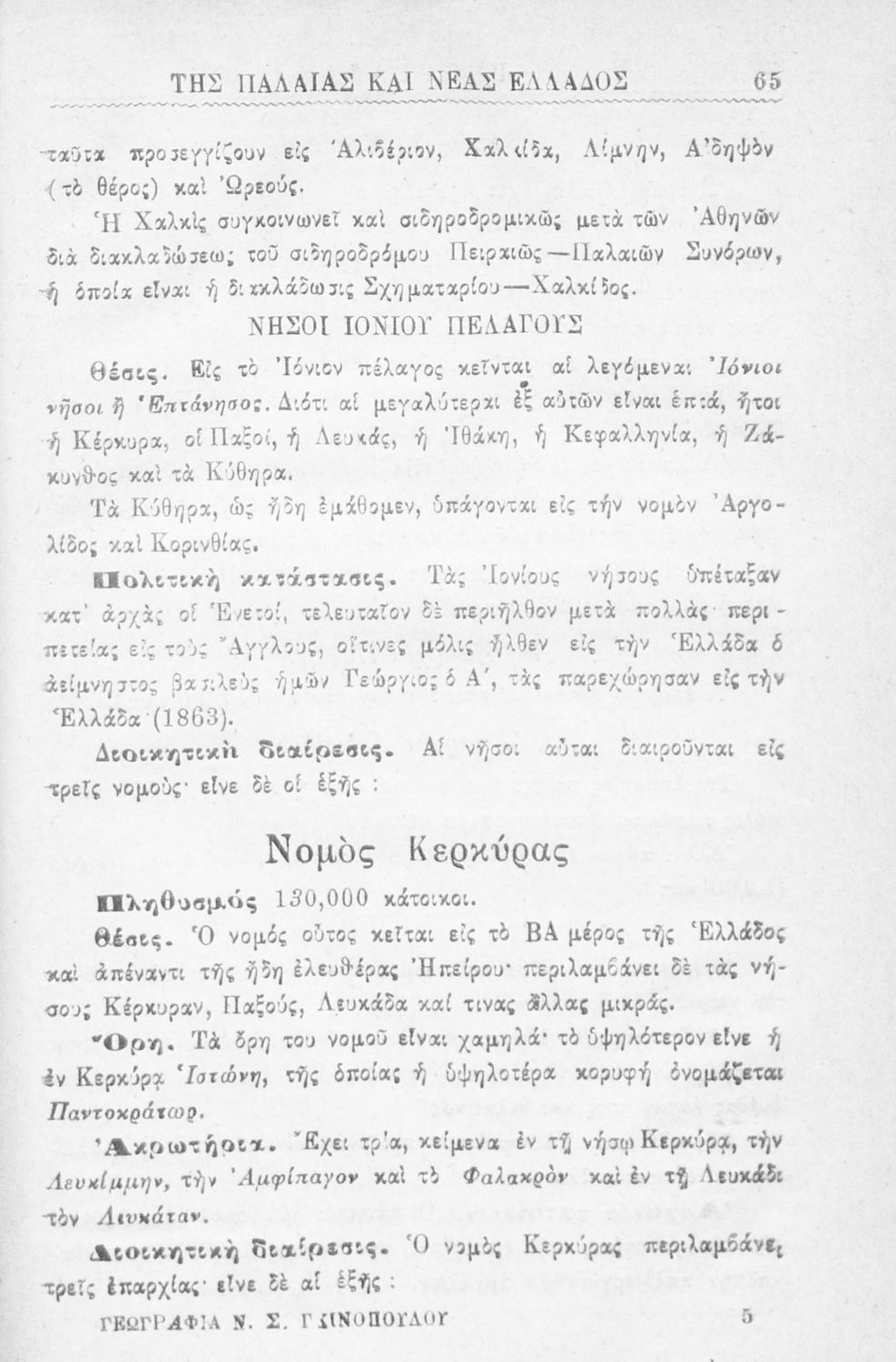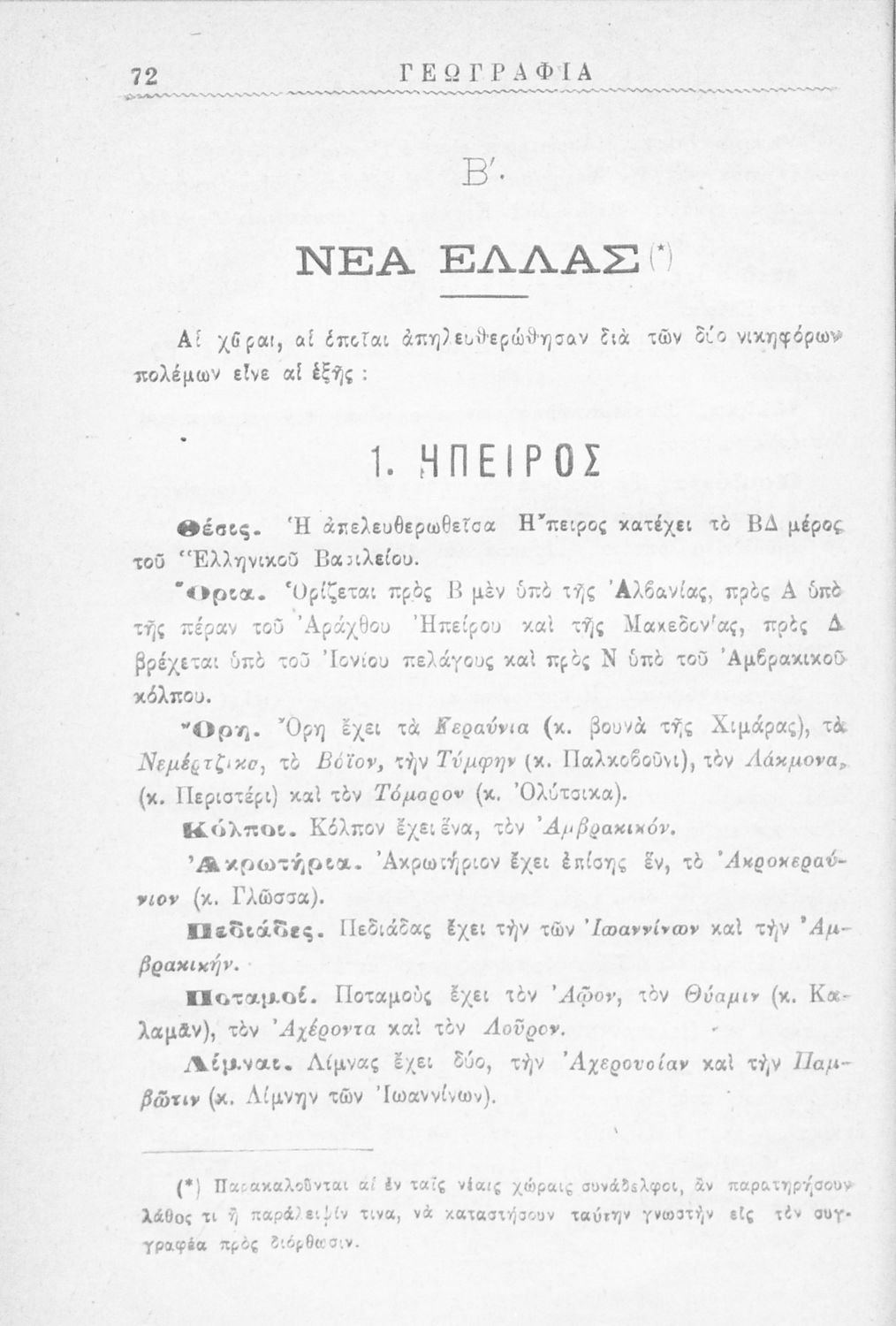 Γεωγραφία της Παλαιάς και Νέας Ελλάδος, προς χρήσιν των Δημοτικών Σχολείων. Συντεταγμένη κατά το νέον πρόγραμμα του Υπουργείου Παιδείας (1ης Σεπτεμβρίου 1913) και κατά την νέαν διοικητικήν διαίρεσιν