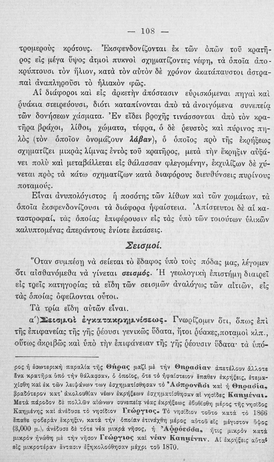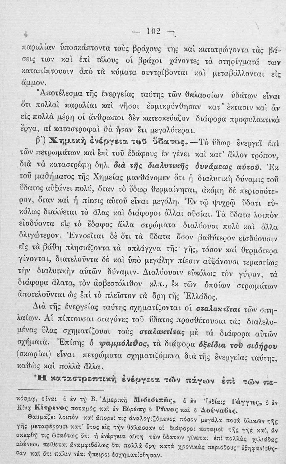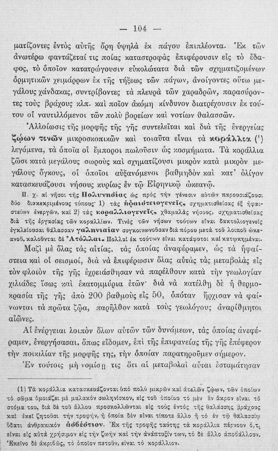 Σχολικό εγχειρίδιο Γεωγραφίας για τις Ε΄ και ΣΤ΄ Δημοτικού που περιλαμβάνει στοιχεία μαθηματικής και φυσικής γεωγραφίας, γεωλογίας και κοσμογραφίας, και εξετάζει την Ελλάδα και ενδεικτικές χώρες από τις πέντε ηπείρους. Περιέχει και αναφορά στις "αλύτρωτες ελληνικές χώρες" στις οποίες περιλαμβάνει την Σερβική και Βουλγαρική Μακεδονία, τη Βόρεια Ήπειρο, τη Θράκη, τη Μικρά Ασία, τη Ρόδο και την Κύπρο.