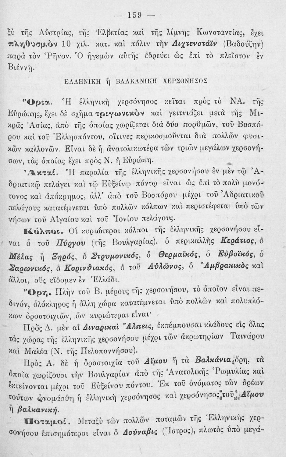 Σχολικό εγχειρίδιο Γεωγραφίας για τις Γ΄, Δ΄, Ε΄, ΣΤ΄ Δημοτικού που περιλαμβάνει εισαγωγή στην πατριδογνωσία και παρουσιάζει την φυσική και πολιτική γεωγραφία της Παλαιάς και Νέας Ελλάδας.