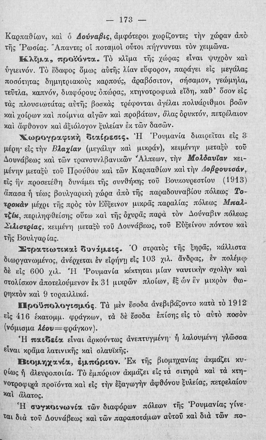 Σχολικό εγχειρίδιο Γεωγραφίας για τις Ε΄ και ΣΤ΄ Δημοτικού που περιλαμβάνει στοιχεία μαθηματικής και φυσικής γεωγραφίας, γεωλογίας και κοσμογραφίας, και εξετάζει την Ελλάδα και ενδεικτικές χώρες από τις πέντε ηπείρους. Περιέχει και αναφορά στις "αλύτρωτες ελληνικές χώρες" στις οποίες περιλαμβάνει την Σερβική και Βουλγαρική Μακεδονία, τη Βόρεια Ήπειρο, τη Θράκη, τη Μικρά Ασία, τη Ρόδο και την Κύπρο.