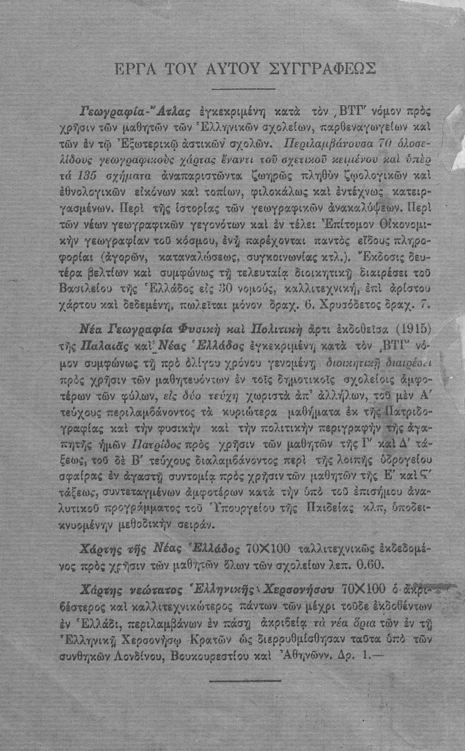 Γεωγραφία φυσική και πολιτική της Παλαιάς και της Νέας Ελλάδος δια την Γ΄, Δ΄, Ε΄, ΣΤ΄ τάξιν των πλήρων και κοινών Δημοτικών Σχολείων αμφοτέρων των φύλων (τεύχος Α΄ )