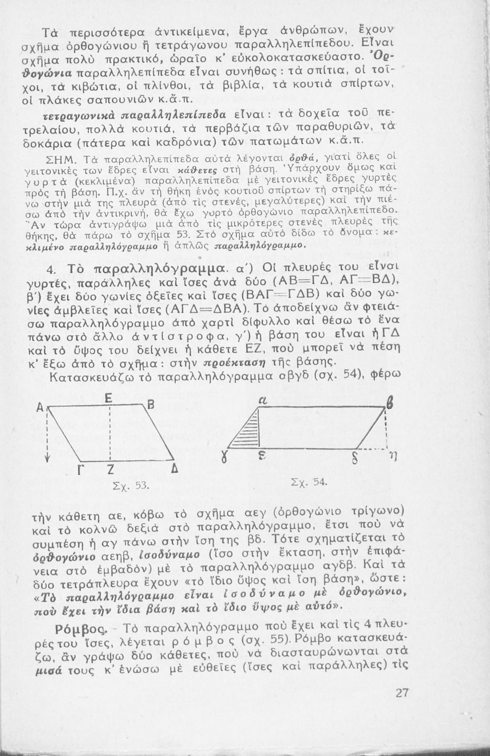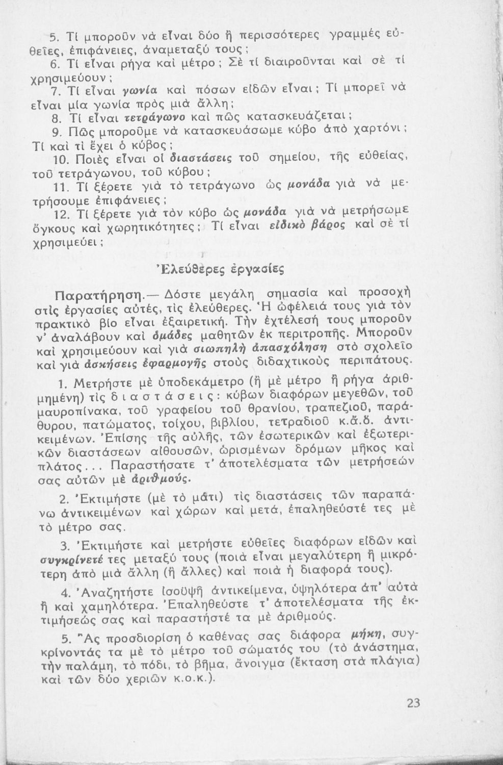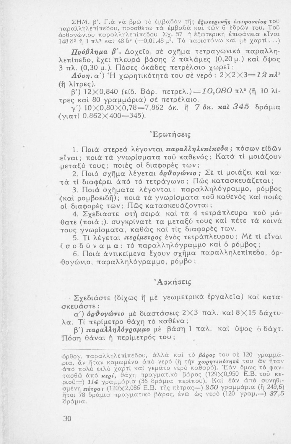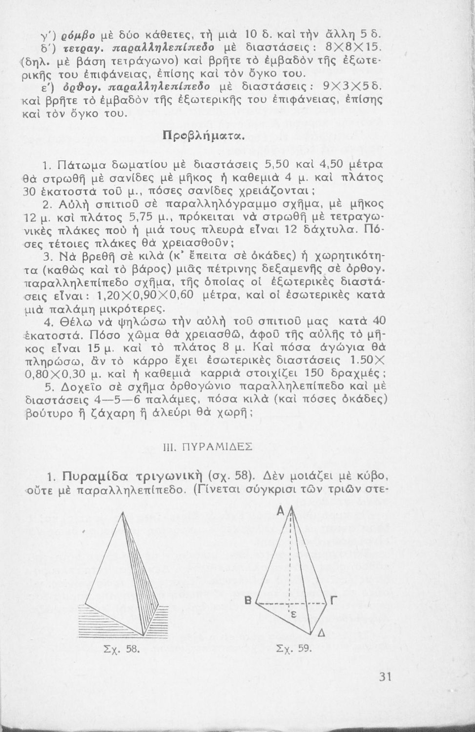 Μαθητικό βοήθημα Γεωμετρίας για τις Ε΄ και ΣΤ΄ Δημοτικού που περιλαμβάνει εικόνες, σχεδιαγράμματα και ασκήσεις. Περιέχει πίνακα με τα ειδικά βάρη διαφόρων σωμάτων.
