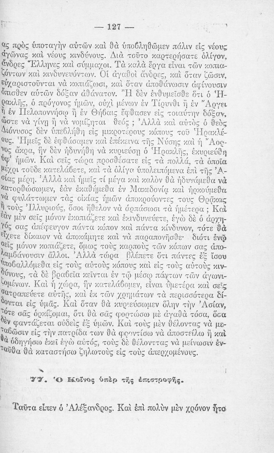 Αναγνωστικό για την Ε΄ Δημοτικού που εξιστορεί την ιστορία του Μεγάλου Αλεξάνδρου με σκοπό να εξυψώσει το φρόνημα των Ελλήνων, που έχει "πληγεί από τη Μικρασιατική καταστροφή", και να τους δώσει "παρηγοριά και