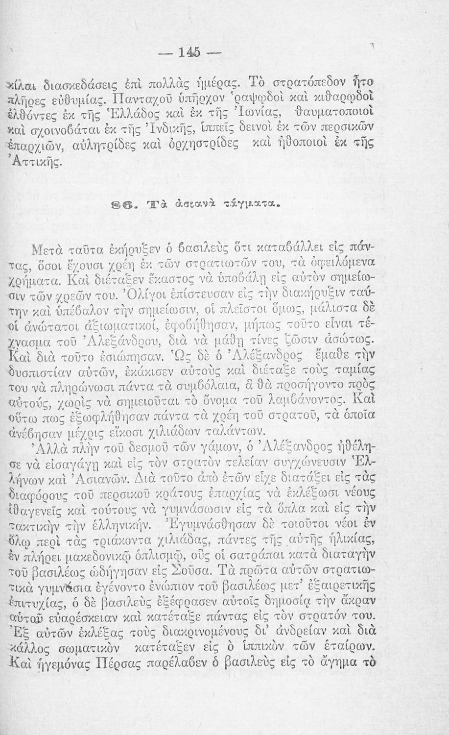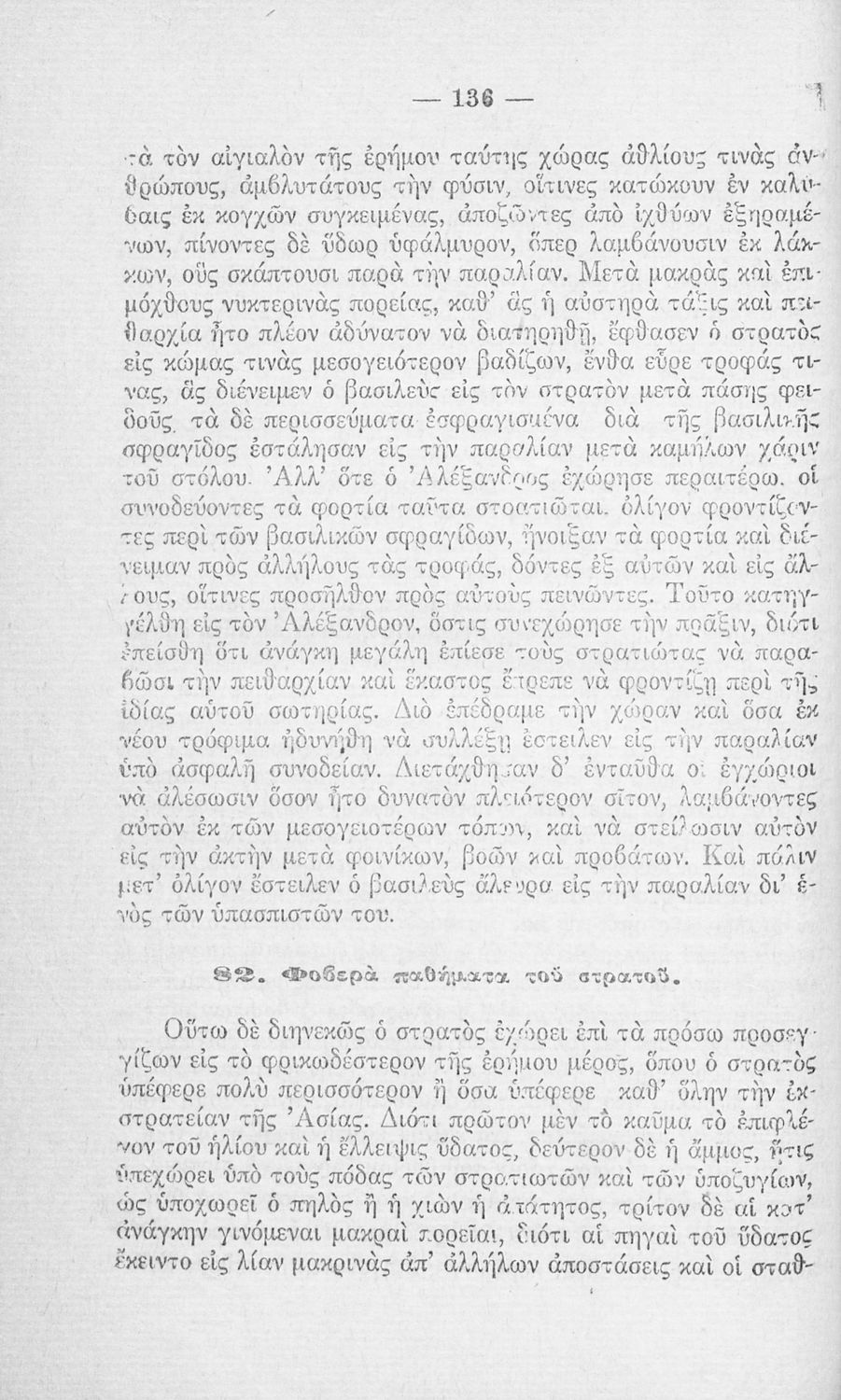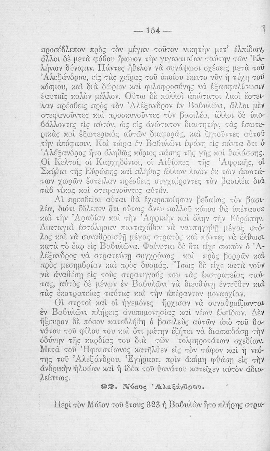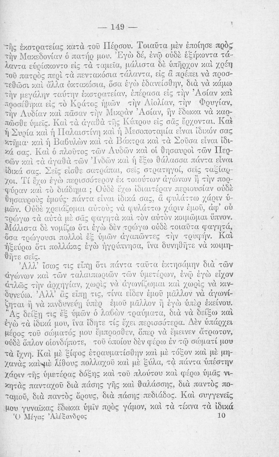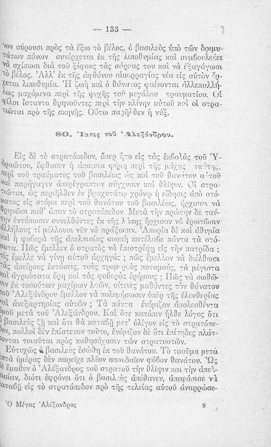 Βαθμίδα εκπαίδευσης: Πρωτοβάθμια Τάξη: Ε' Δημοτικού Μάθημα: Νέα Ελληνικά Γλώσσα: Απλή καθαρεύουσα Παρουσίαση περιεχομένου: Το σύγγραμμα ήταν σχολικό εγχειρίδιο για το μάθημα της Γλώσσας στο Δημοτικό. Περιέχει το βίο και τα κατορθώματα του Μεγάλου Αλεξάνδρου. Καλλιεργεί την εθνική και ιστορική συνείδηση των μαθητών. |