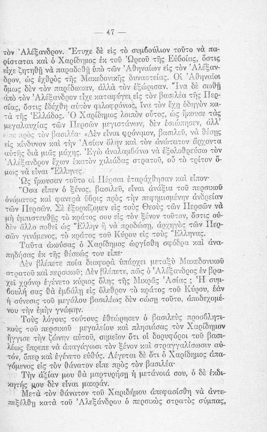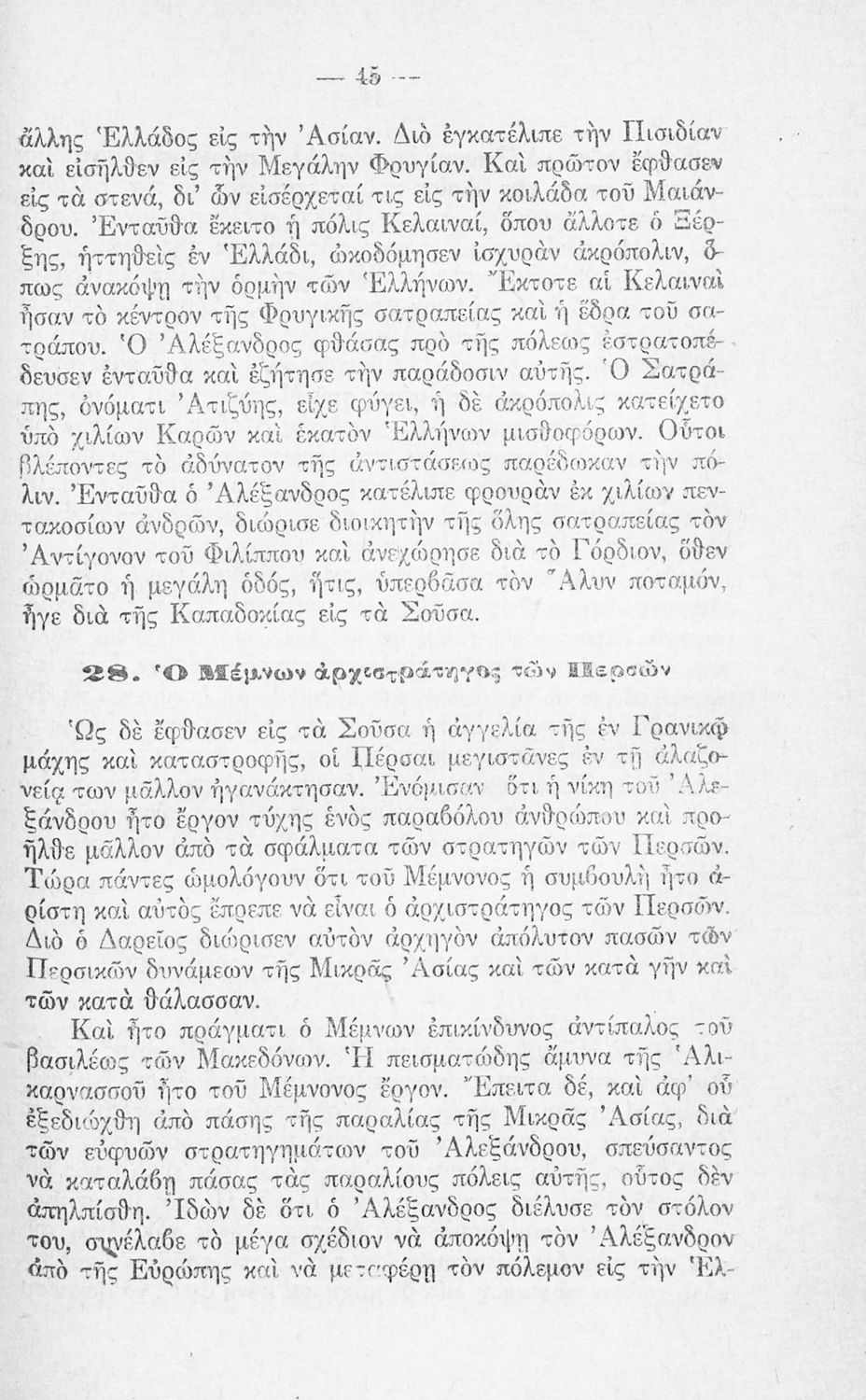 Αναγνωστικό για την Ε΄ Δημοτικού που εξιστορεί την ιστορία του Μεγάλου Αλεξάνδρου με σκοπό να εξυψώσει το φρόνημα των Ελλήνων, που έχει "πληγεί από τη Μικρασιατική καταστροφή", και να τους δώσει "παρηγοριά και