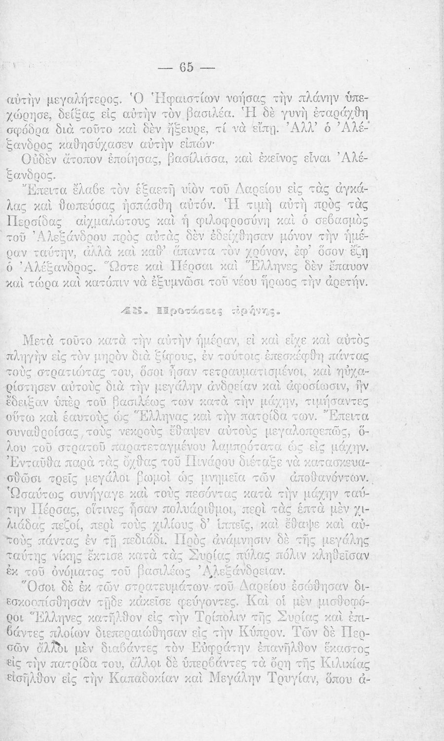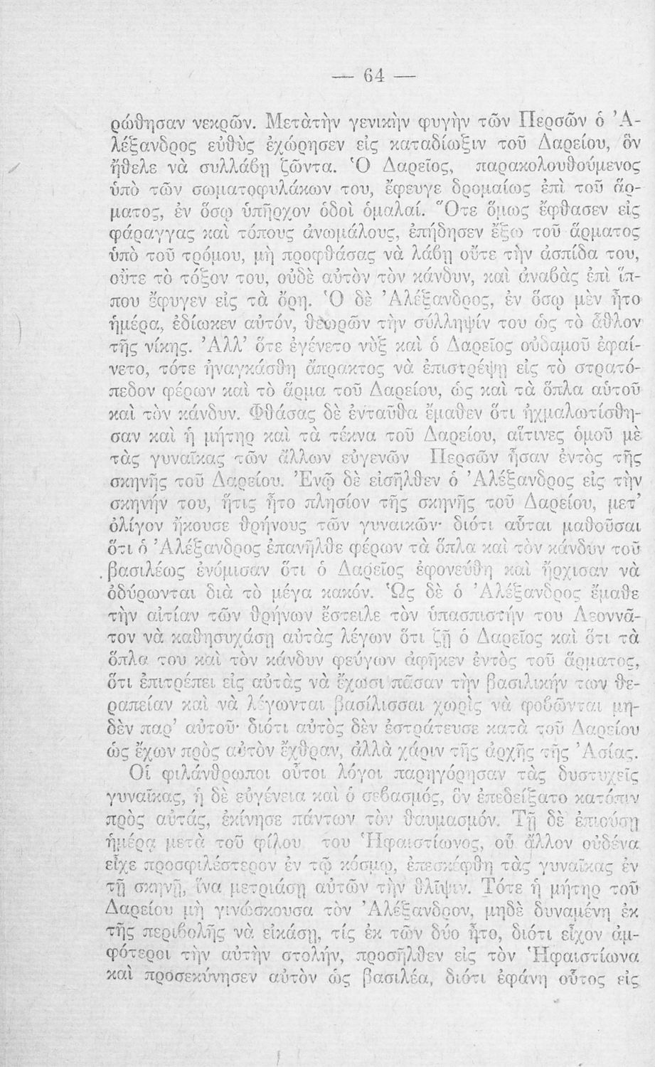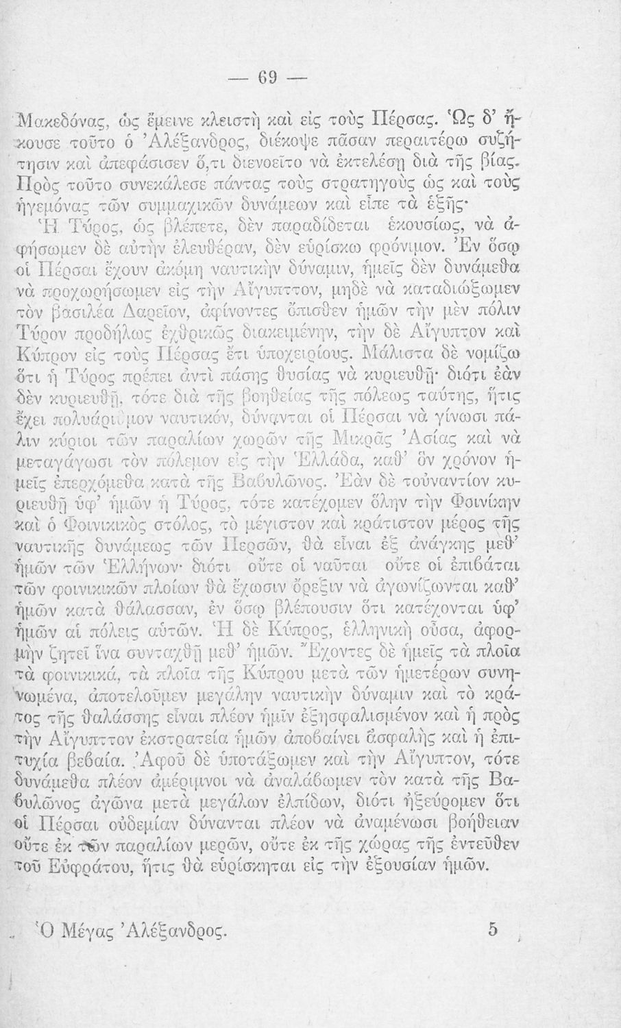 Βαθμίδα εκπαίδευσης: Πρωτοβάθμια Τάξη: Ε' Δημοτικού Μάθημα: Νέα Ελληνικά Γλώσσα: Απλή καθαρεύουσα Παρουσίαση περιεχομένου: Το σύγγραμμα ήταν σχολικό εγχειρίδιο για το μάθημα της Γλώσσας στο Δημοτικό. Περιέχει το βίο και τα κατορθώματα του Μεγάλου Αλεξάνδρου. Καλλιεργεί την εθνική και ιστορική συνείδηση των μαθητών. |