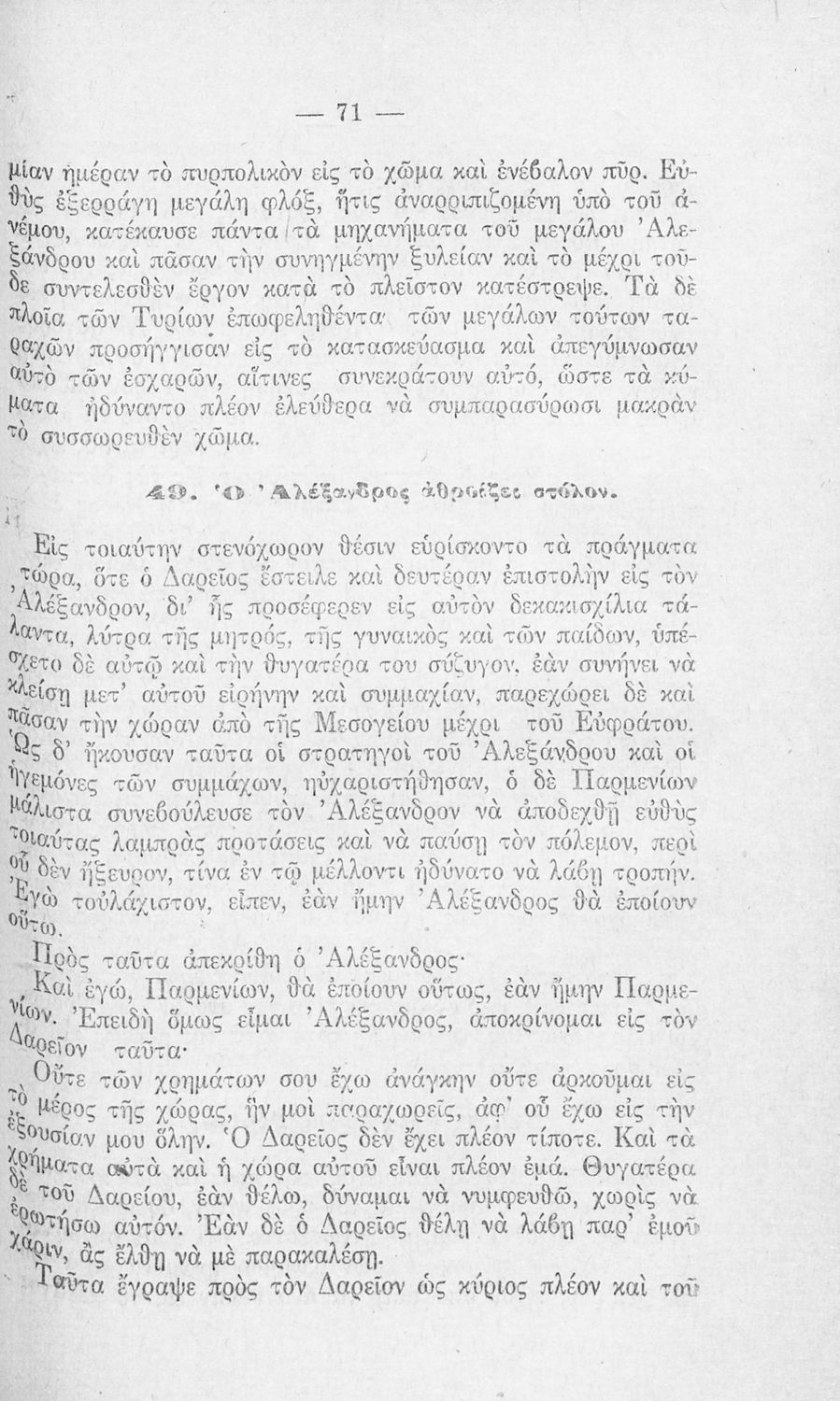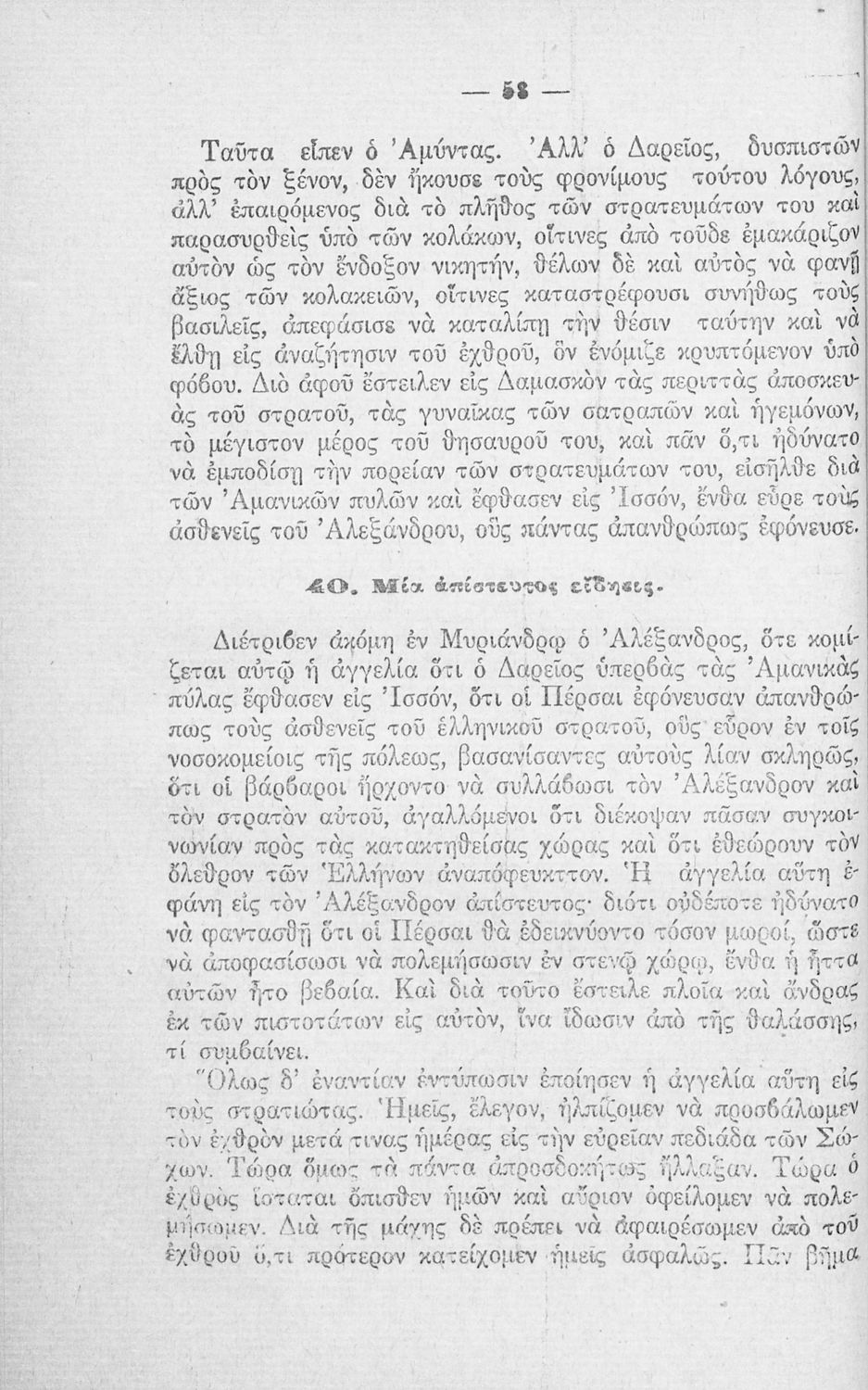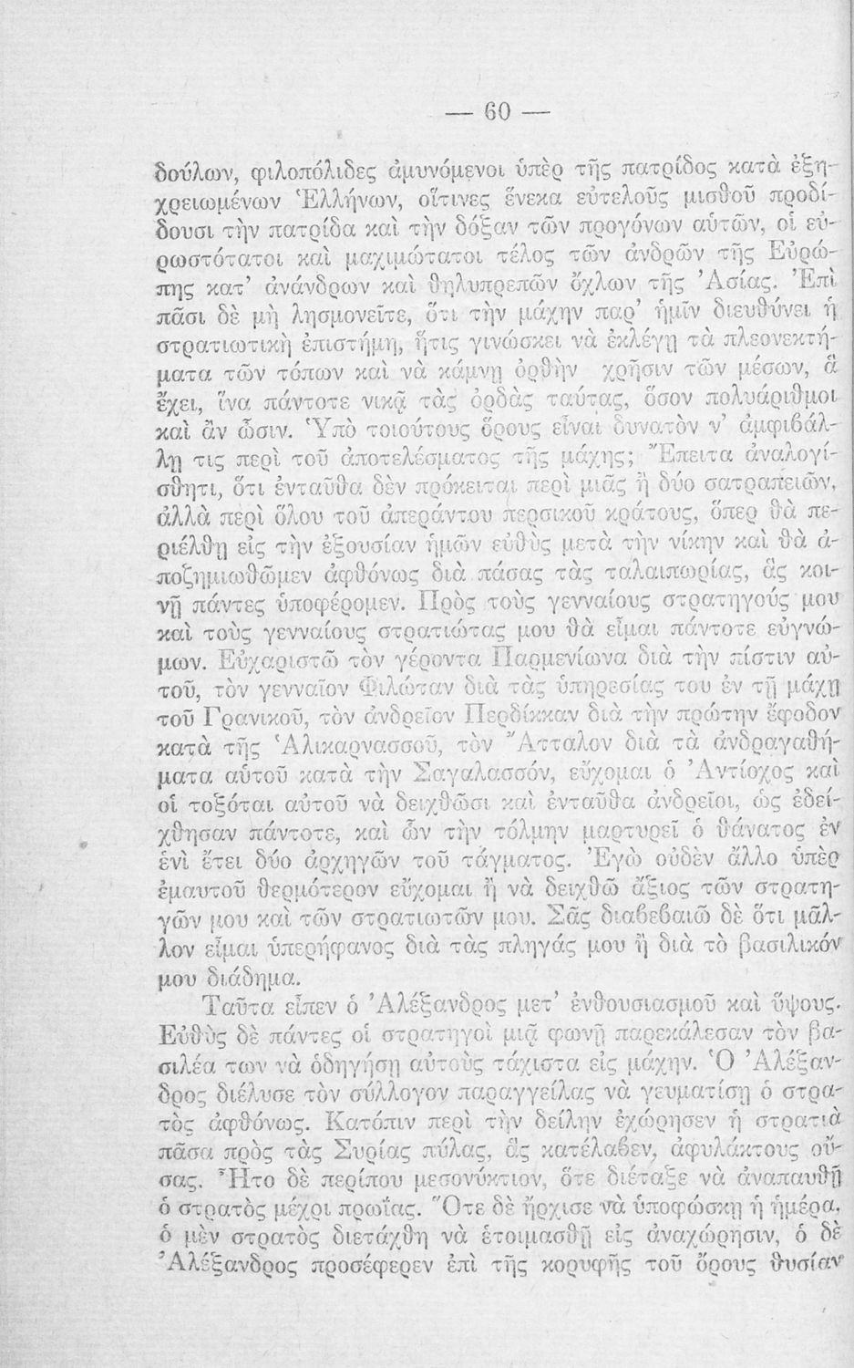 Βαθμίδα εκπαίδευσης: Πρωτοβάθμια Τάξη: Ε' Δημοτικού Μάθημα: Νέα Ελληνικά Γλώσσα: Απλή καθαρεύουσα Παρουσίαση περιεχομένου: Το σύγγραμμα ήταν σχολικό εγχειρίδιο για το μάθημα της Γλώσσας στο Δημοτικό. Περιέχει το βίο και τα κατορθώματα του Μεγάλου Αλεξάνδρου. Καλλιεργεί την εθνική και ιστορική συνείδηση των μαθητών. |