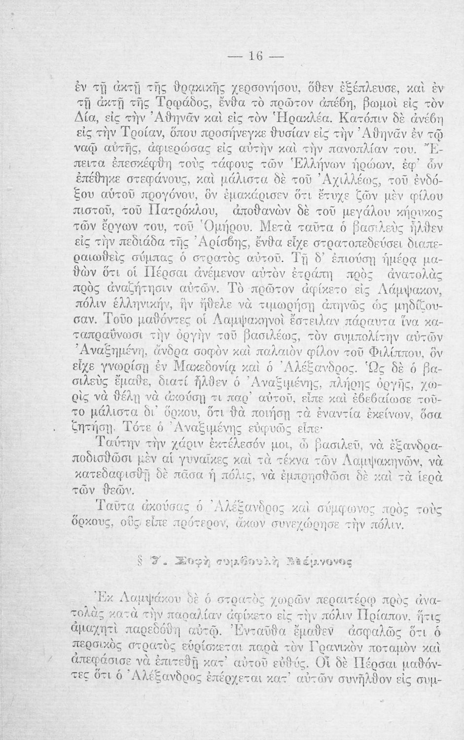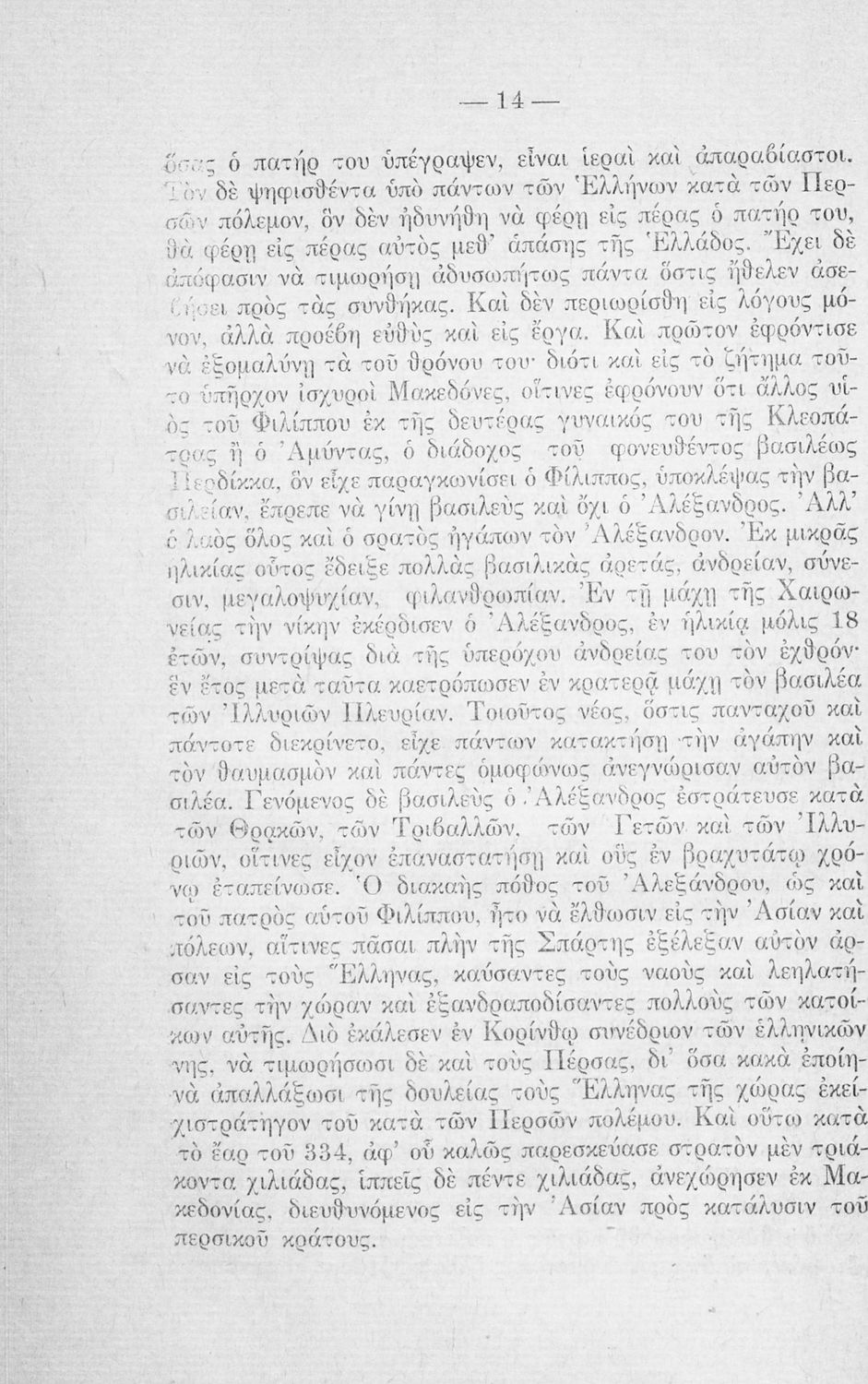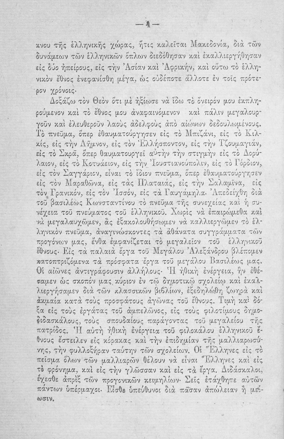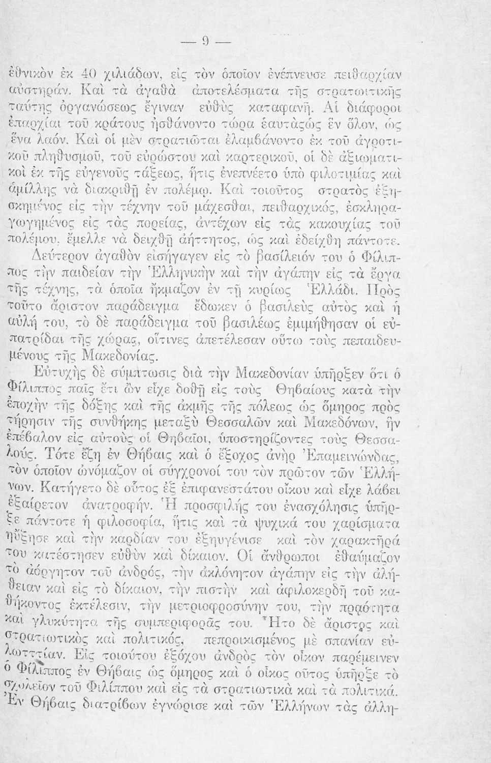 Βαθμίδα εκπαίδευσης: Πρωτοβάθμια Τάξη: Ε' Δημοτικού Μάθημα: Νέα Ελληνικά Γλώσσα: Απλή καθαρεύουσα Παρουσίαση περιεχομένου: Το σύγγραμμα ήταν σχολικό εγχειρίδιο για το μάθημα της Γλώσσας στο Δημοτικό. Περιέχει το βίο και τα κατορθώματα του Μεγάλου Αλεξάνδρου. Καλλιεργεί την εθνική και ιστορική συνείδηση των μαθητών. |