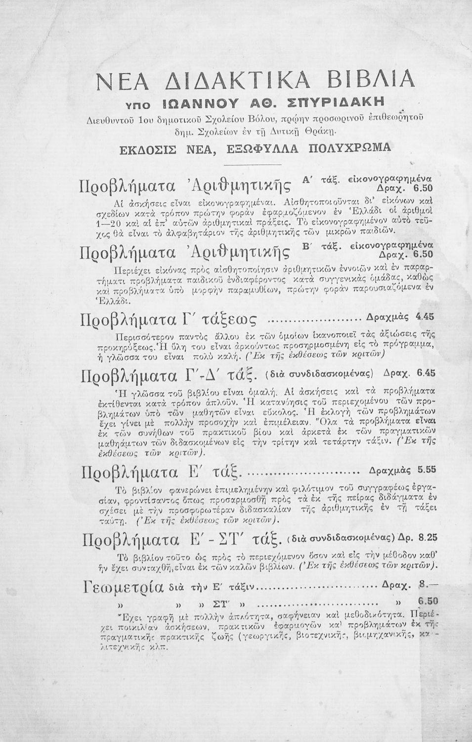 Παιδαγωγικό βοήθημα Αριθμητικής ΣΤ΄ Δημοτικού, γραμμένο σύμφωνα με τις επιταγές του Σχολείου Εργασίας, που περιλαμβάνει 170 μαθήματα, ένα για κάθε μέρα του σχολικού έτους.