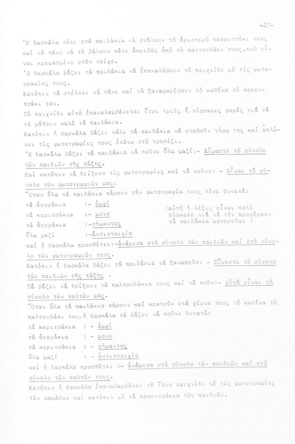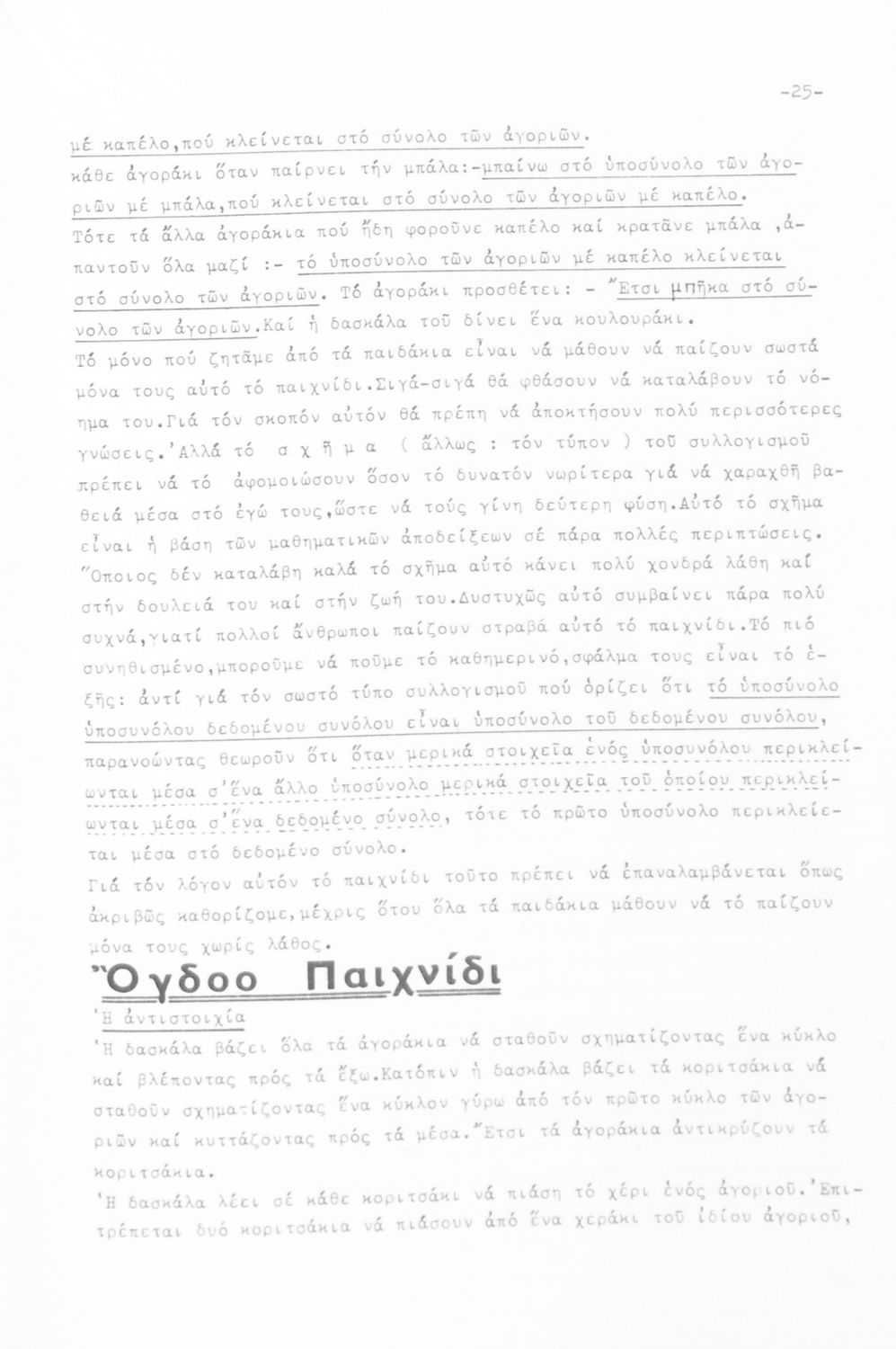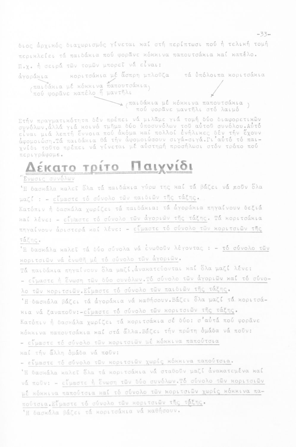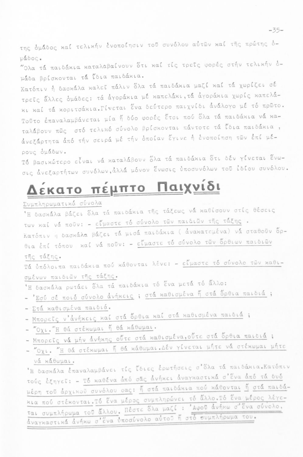 Παιδαγωγικό βοήθημα Μαθηματικών για το δάσκαλο της πρώτης Δημοτικού. Περιέχει τη θεωρία των συνόλων, τη θεωρία των πεδίων και τη σημασία των μέτρων και των αριθμών