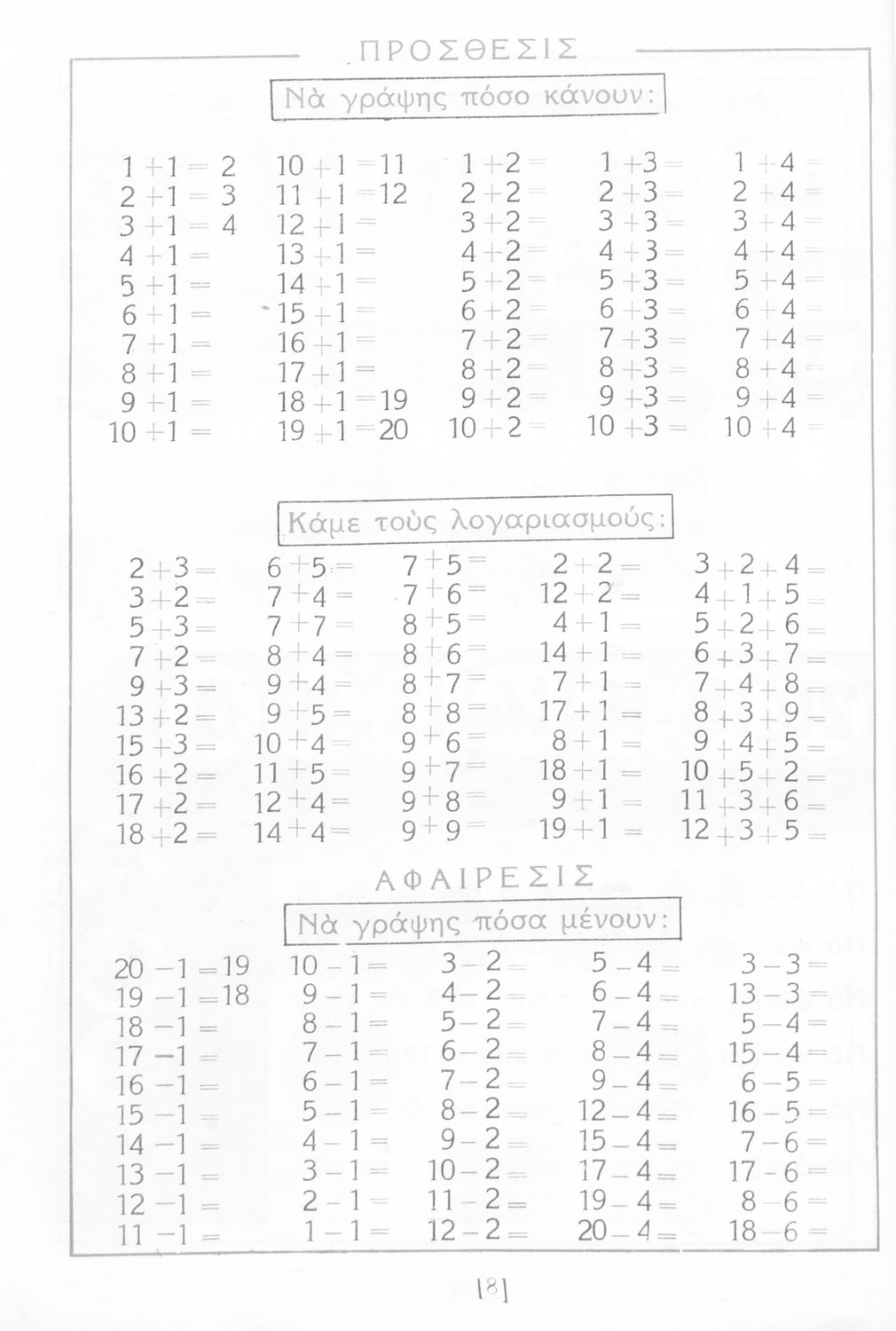 Μαθητικό βοήθημα Αριθμητικής για τους μαθητές των Γ΄ και Δ΄ τάξεων του Δημοτικού. Το βιβλίο περιέχει επαναληπτικές ασκήσεις με αριθμητικές ασκήσεις με τους αριθμούς από το 1-100.