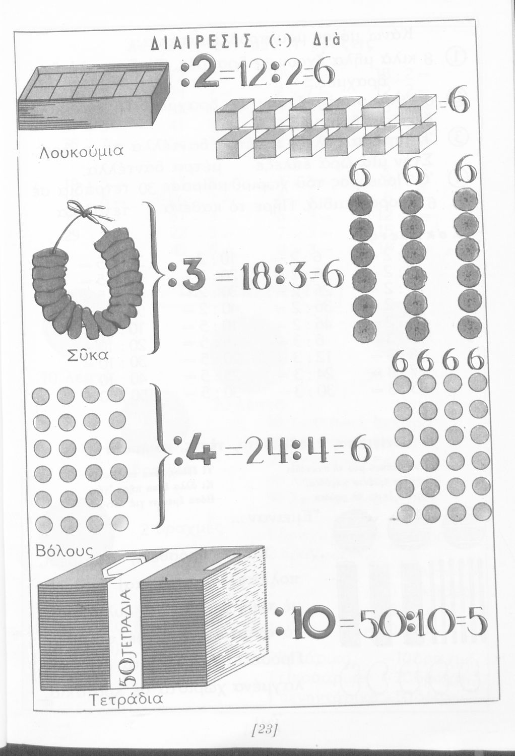 Σχολικό εγχειρίδιο Μαθηματικών ΣΤ΄ Δημοτικού που περιλαμβάνει ασκήσεις λογιστικού χαρακτήρα και ασκήσεις μέτρησης γεωμετρικών σχημάτων. Φέρει το σύμβολο της δικτατορίας.