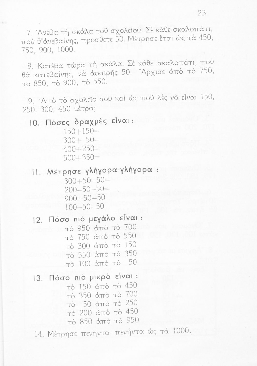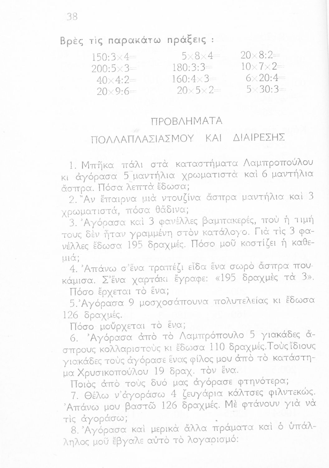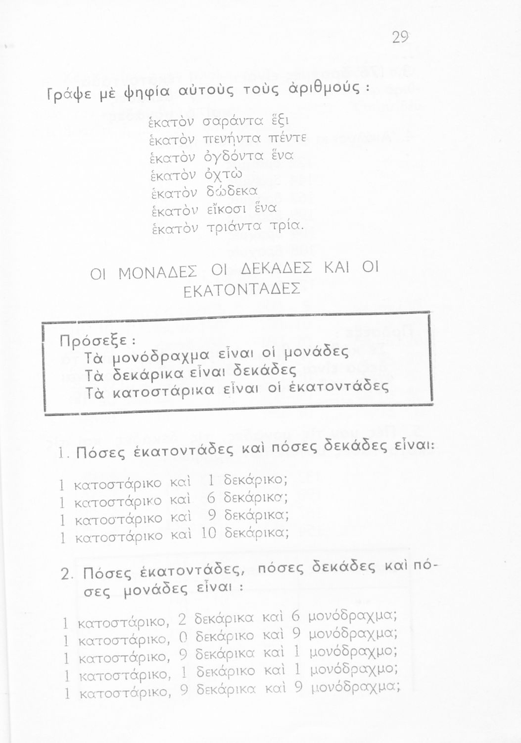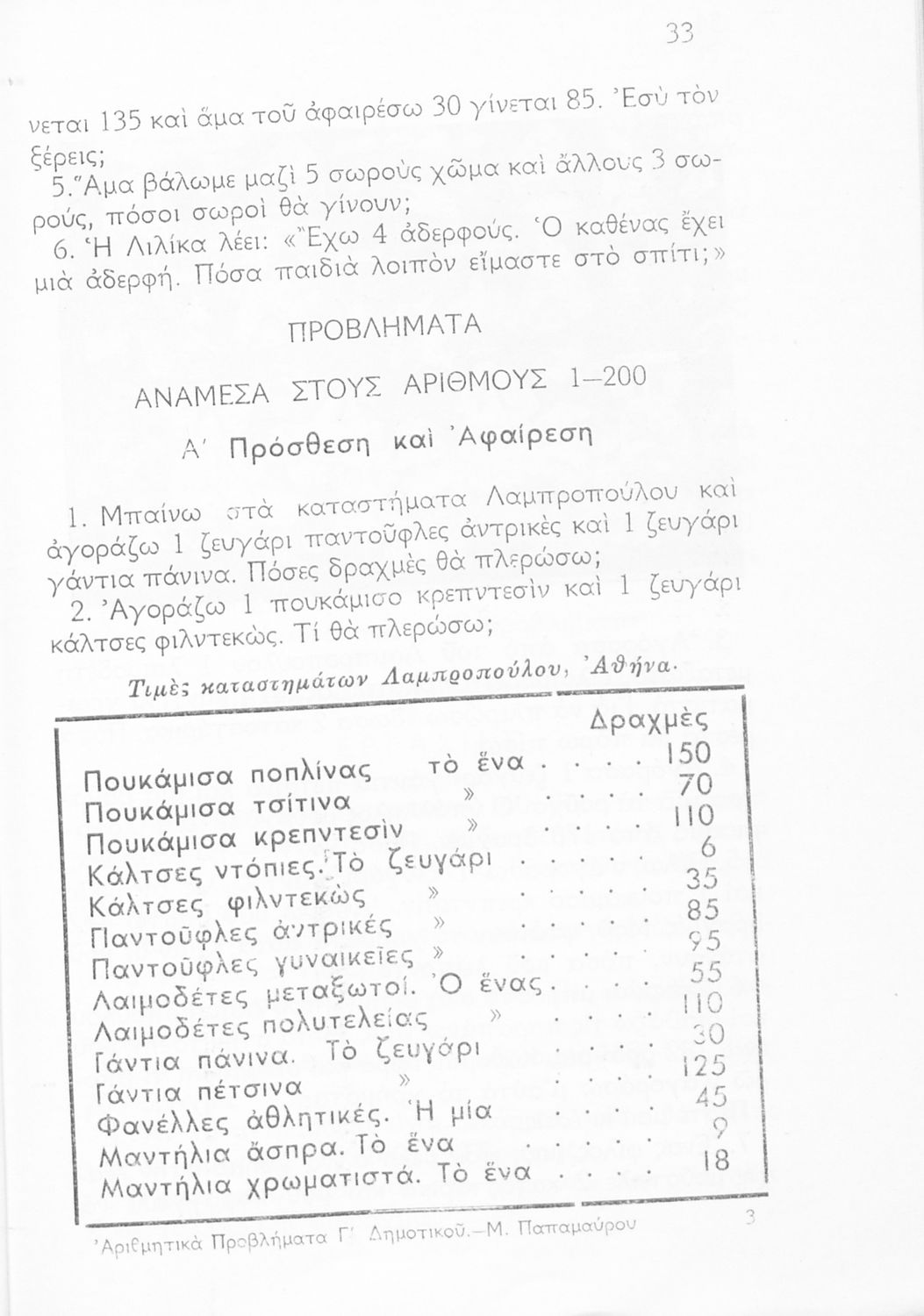 Βαθμίδα εκπαίδευσης: Πρωτοβάθμια Τάξη: Γ' Δημοτικού Μάθημα: Μαθηματικά Γλώσσα: Δημοτική Παρουσίαση περιεχομένου: Μαθητικό βοήθημα Μαθηματικών Γ΄ Δημοτικού που περιλαμβάνει τις 4 βασικές πράξεις της αριθμητικής, τους αριθμούς, τα κλάσματα, και τις υποδιαιρέσεις των νομισμάτων. |