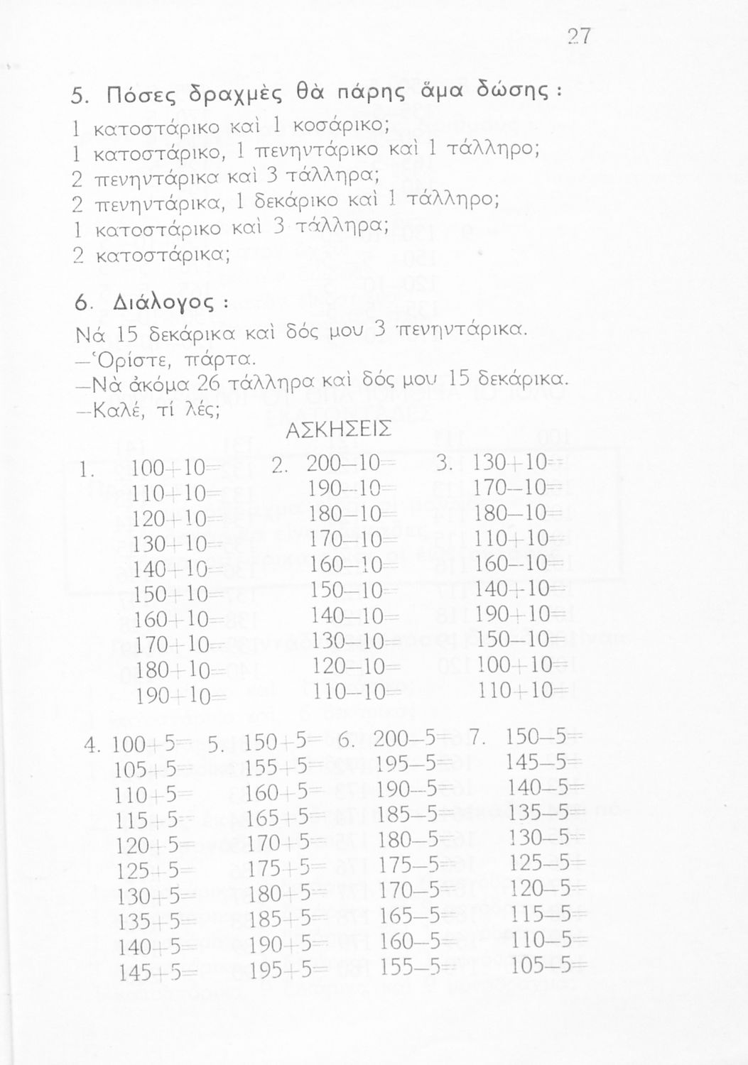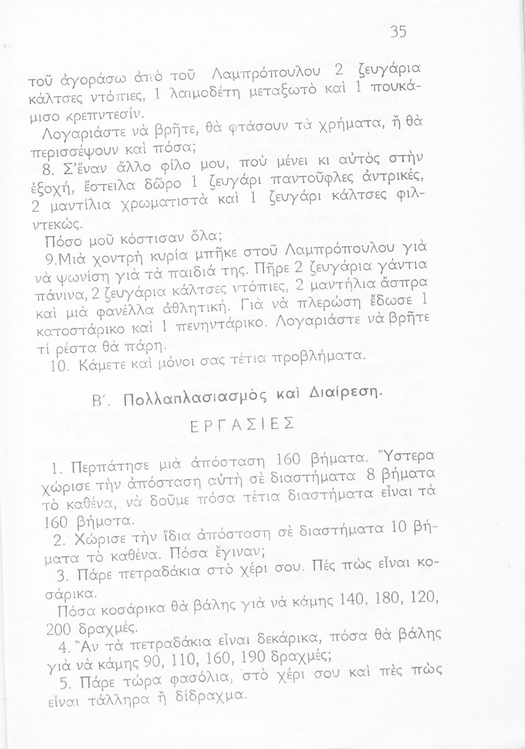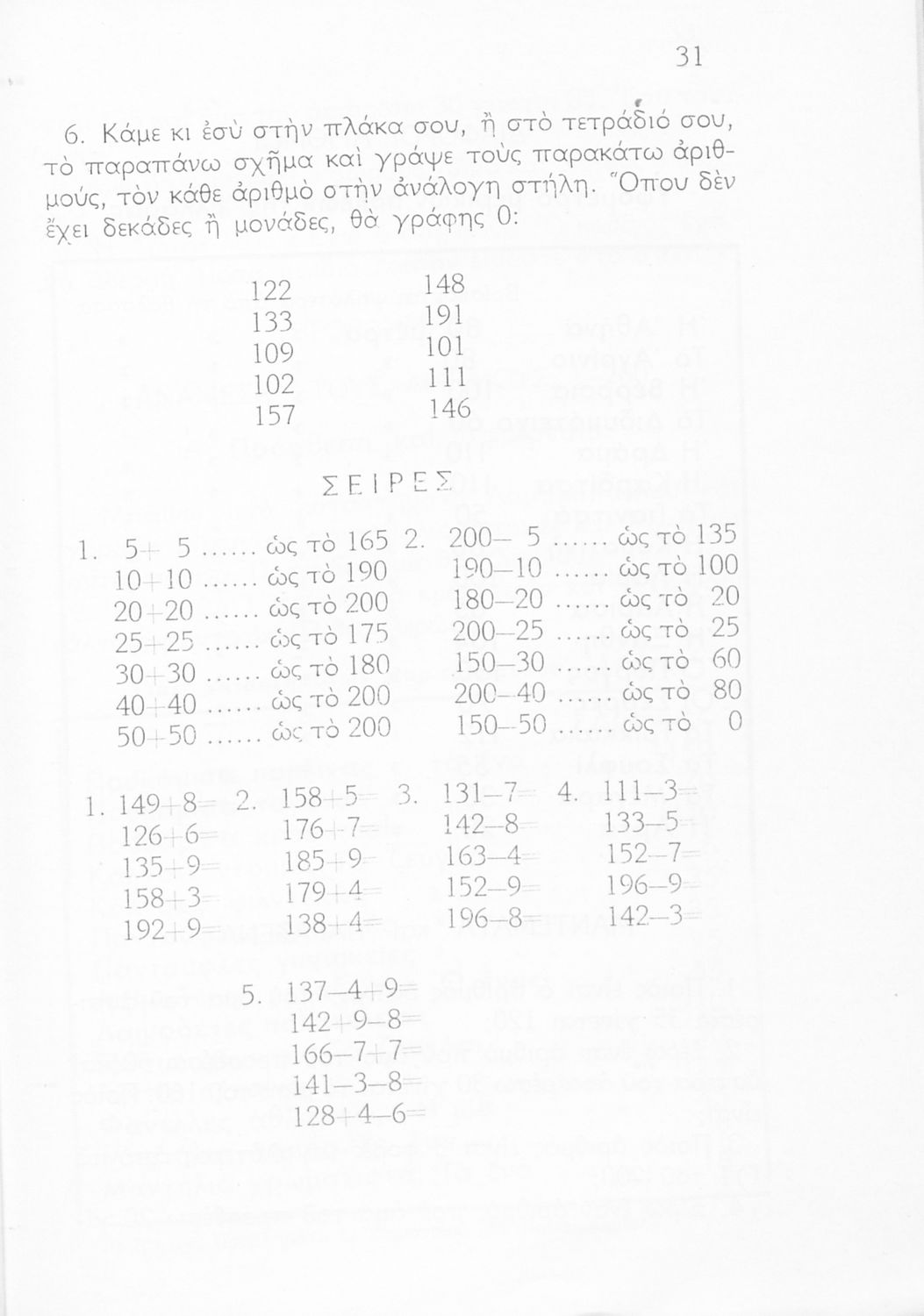 LDR 01193 2200205 4500 035 ## _a03-20560595 040 ## _aΒιβλιοθήκη της Βουλής των Ελλήνων 041 ## _ael 100 ## _aΜ. Παπαμαύρος 110 ## _a20560595 245 0# _aΑριθμητικά προβλήματα του Δημοτικού Σχολείου (νέο σύστημα) τάξη Γ΄ 250 ## _a1η Έκδοση 260 ## _aΑθήνα _bΔημητράκος _c1934 300 ## _a90 _bΕξώφυλλο (έγχρωμο), Σκίτσα (ασπρόμαυρα) _c19 520 ## _aΜαθητικό βοήθημα Μαθηματικών Γ΄ Δημοτικού που περιλαμβάνει τις 4 βασικές πράξεις της αριθμητικής, τους αριθμούς, τα κλάσματα, και τις υποδιαιρέσεις των νομισμάτων. 521 ## _aΓ' Δημοτικού 522 ## _aΕλλάδα 546 ## _aΔημοτική 563 ## _aΜαλακό Εξώφυλλο 650 #4 _aΑριθμητικά προβλήματα _aΑφαίρεση _aΔιαίρεση _aΚλάσματα _aΝομίσματα _aΠολλαπλασιασμός _aΠρόσθεση